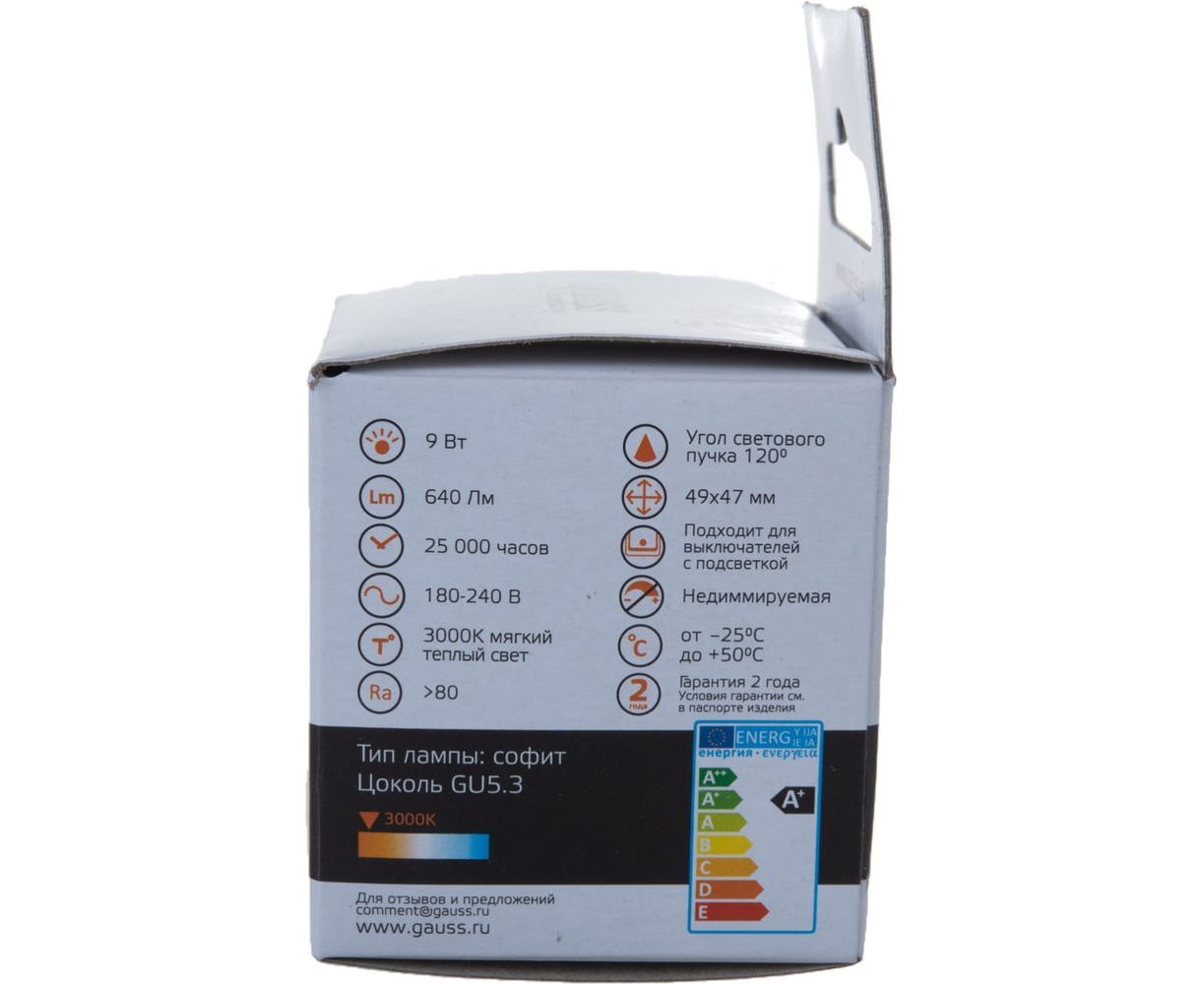 Лампа Gauss LED Elementary MR16 GU5.3 9W 640lm 3000K 13519