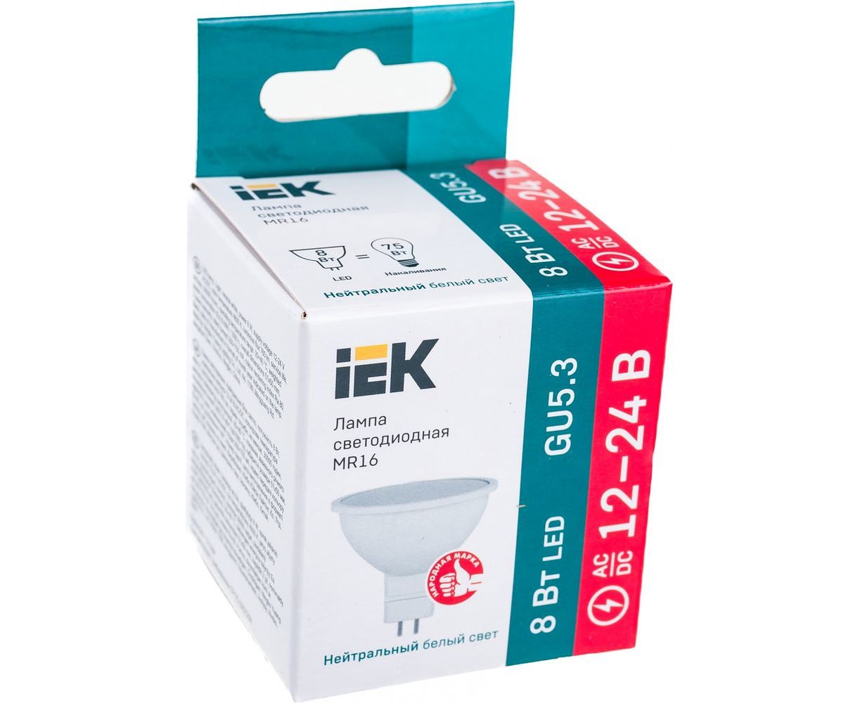 Лампа IEK LED MR16 софит 8Вт 12-24В 4000К GU5.3 LLE-MR16-08-12-24-40-GU5