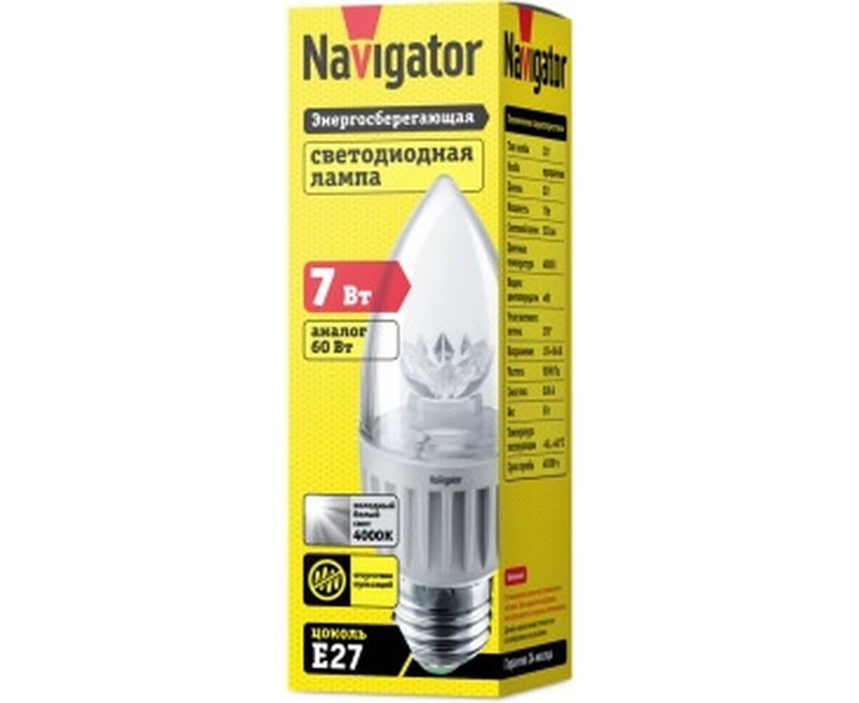 Лампа Navigator, NLL-C37-7-230-4K-E27-CL 71851