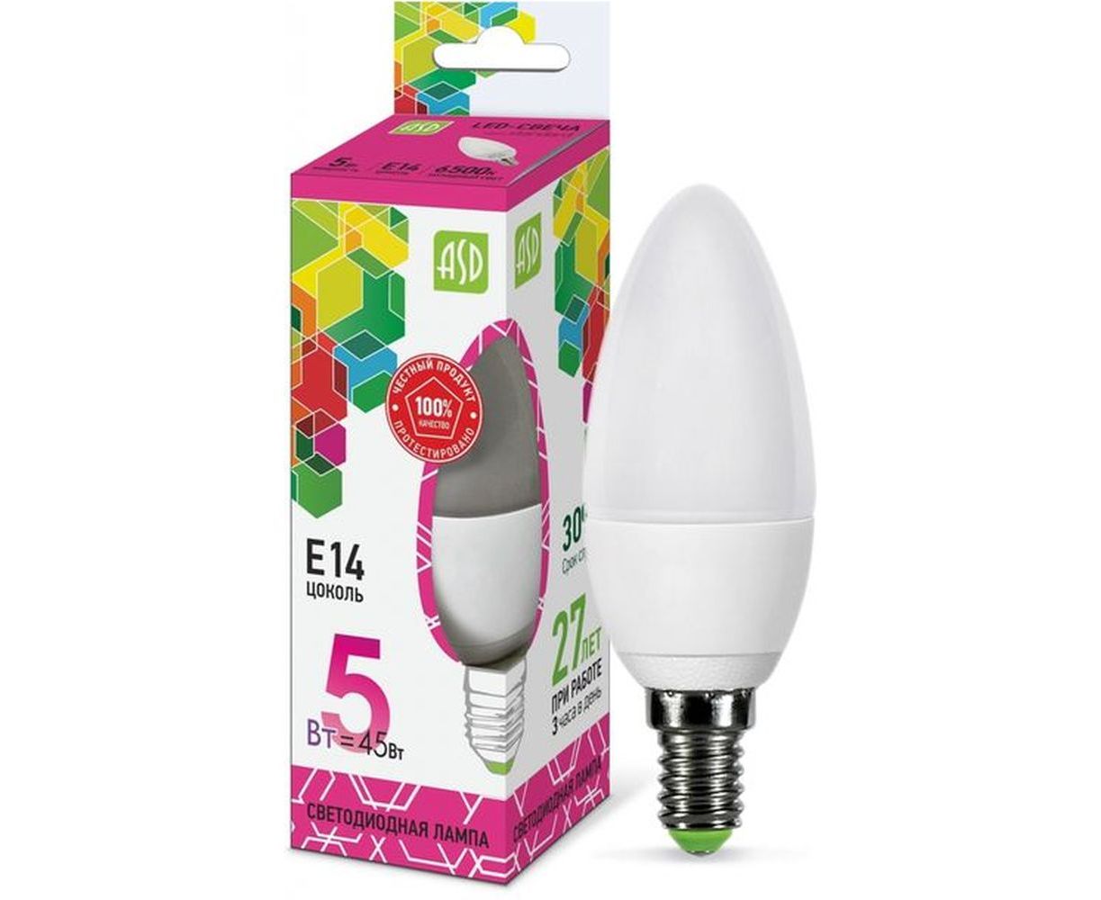Светодиодная лампа ASD LED-СВЕЧА-std 5Вт 230В Е14 6500К 450Лм 4690612034072