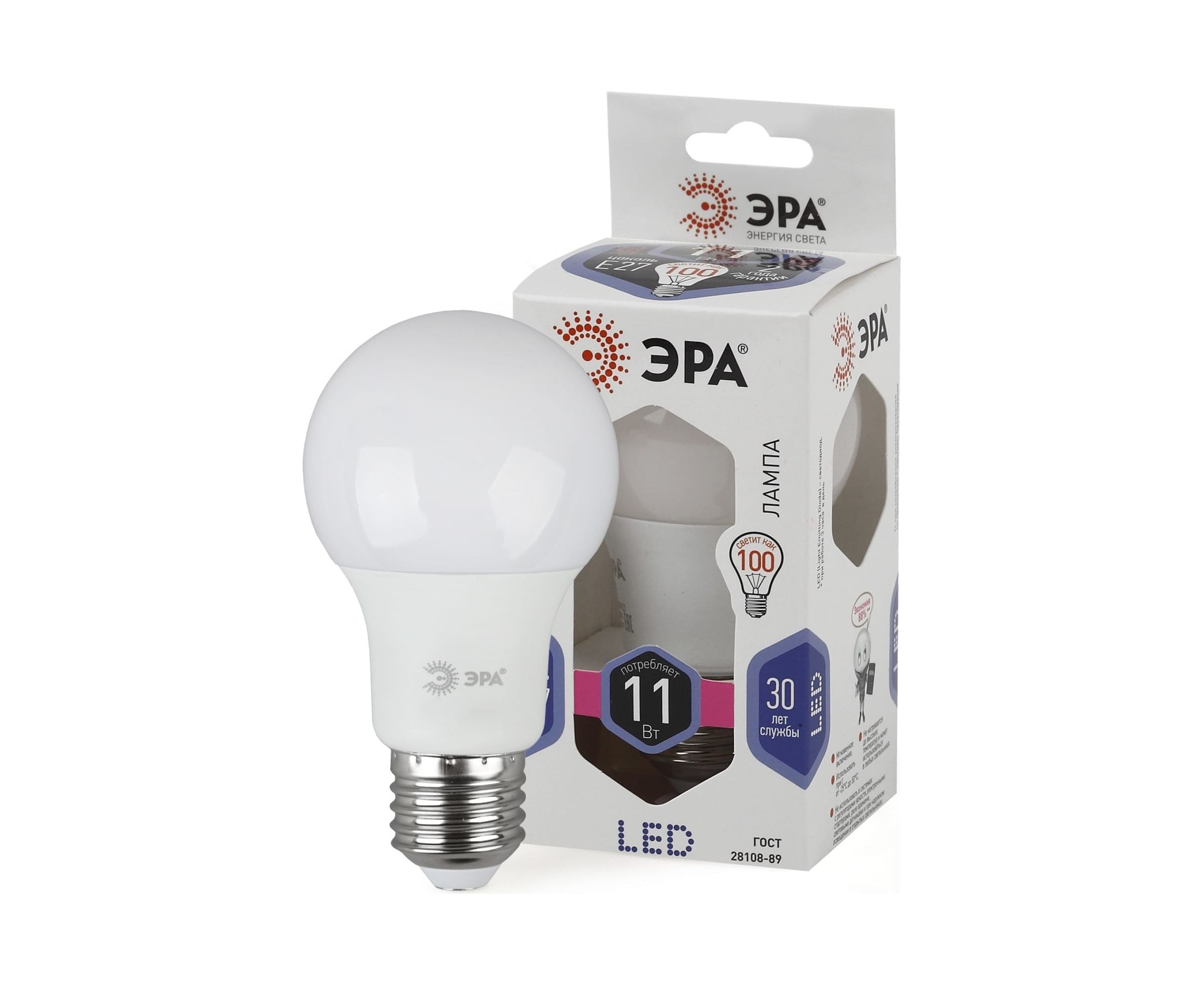Светодиодная лампа ЭРА LED A60-11W-860-E27, груша, холодный Б0031394 подходит для установки в люстры и все типы бытовых светильников - потолочные, настольные, бра. Бережёт электроэнергию, ярко светит, имеет долгий срок службы. Цветовая температура - холодный белый свет. Такое освещение бодрит, повышает работоспособность. Этот современный источник света создаёт комфортное и безопасное для глаз освещение.