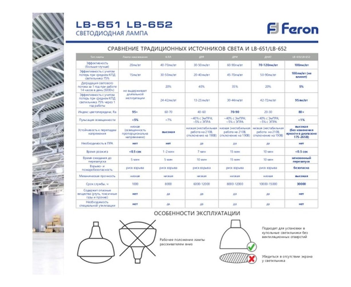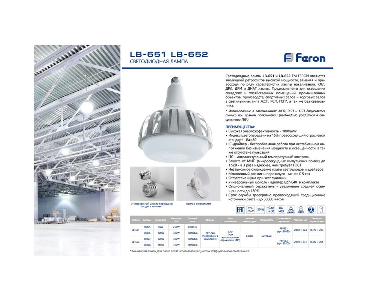 Светодиодная лампа FERON, 150W 230V, E27-E40, 6400K, LB-652 38098