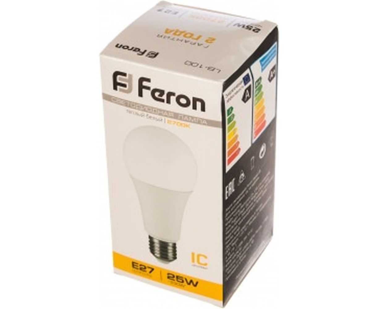 Светодиодная лампа FERON 25W 230V E27 2700K, LB-100 25790 является простым в использовании осветительным прибором, который обладает матовой колбой грушевидной формы из пластика.Изделие работает практически с любыми светильниками с цоколем Е27. Мощность - 25 Вт.