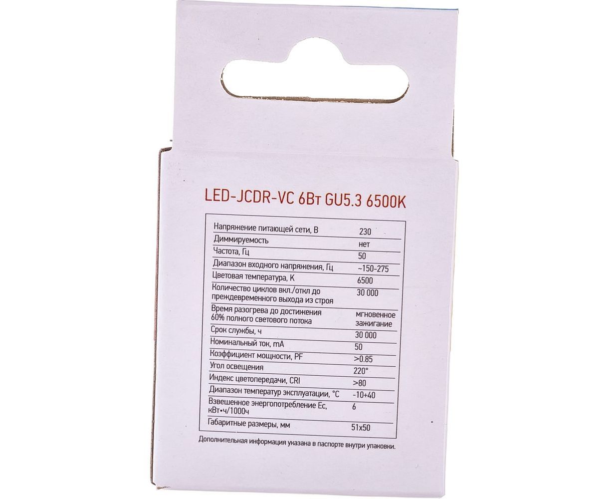 Светодиодная лампа IN HOME LED-JCDR-VC 6Вт, 230В, GU5.3, 6500К. 525Лм 4690612030739