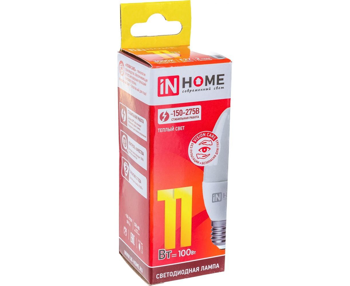 Светодиодная лампа IN HOME LED-СВЕЧА-VC 11Вт 230В Е27 3000К 820Лм 4690612020488