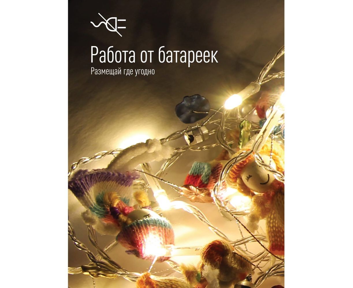 Декоративная гирлянда КОСМОС Вязаные куклы, KOCNL-EL127 создаст праздничную атмосферу в вашем доме, рабочем месте, офисе, и даже в автомобиле, так как работает она от 2х батареек типа АА.