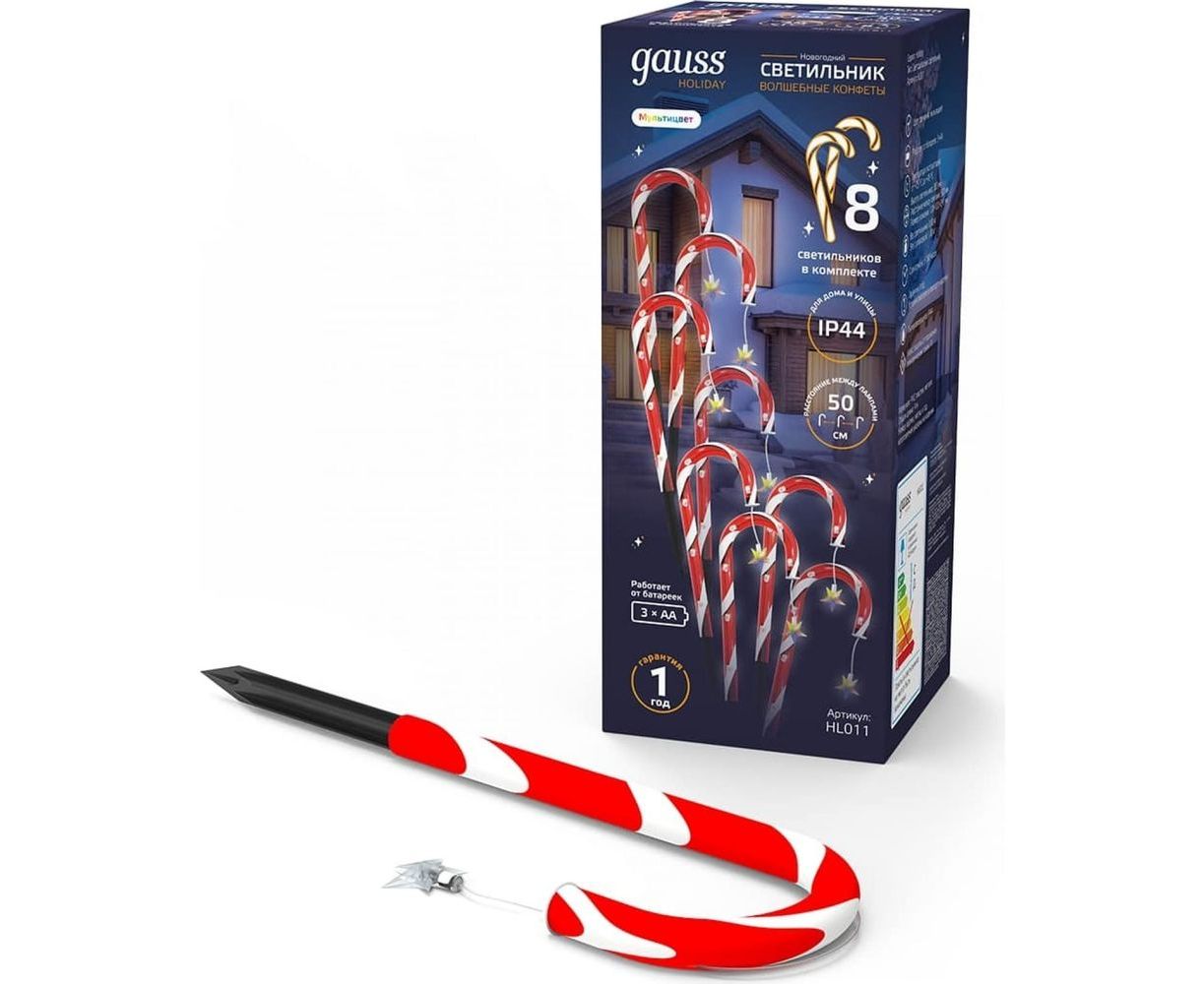 Новогодний светильник Gauss Волшебные конфеты, Holiday, IP44, мультицвет, LED 1/8 HL011 – стильная и яркая гирлянда в виде леденцов, которая подарит ощущение праздника как взрослым, так и детям.