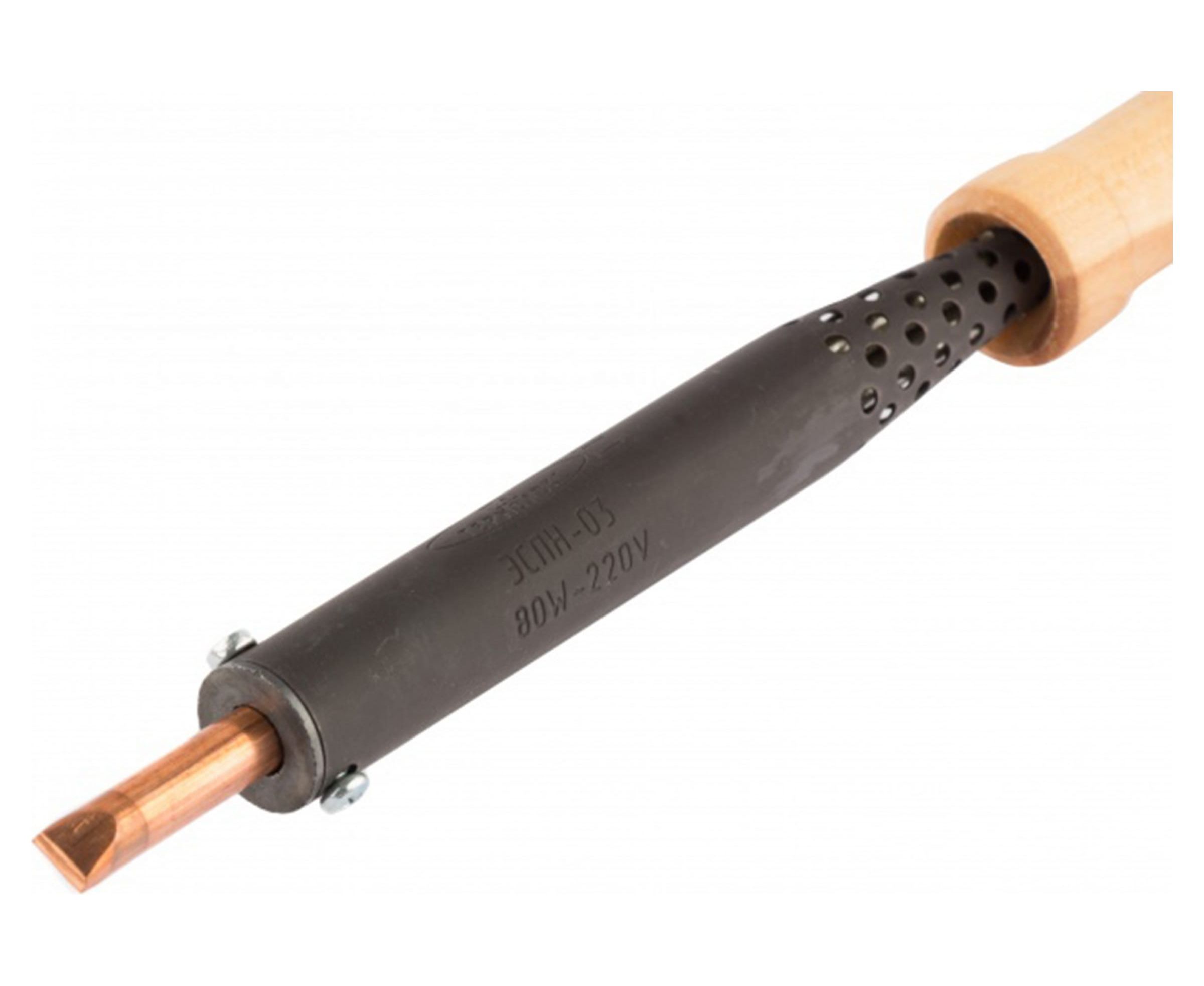 Электрический паяльник СИБРТЕХ ЭПСН-03-80/220 деревянная ручка Россия 91310 предназначен для проведения электромонтажных работ: пайки электрокомпонентов, проводов, мелких металлических и пластиковых деталей, радиосхем, ремонта бытовой техники.