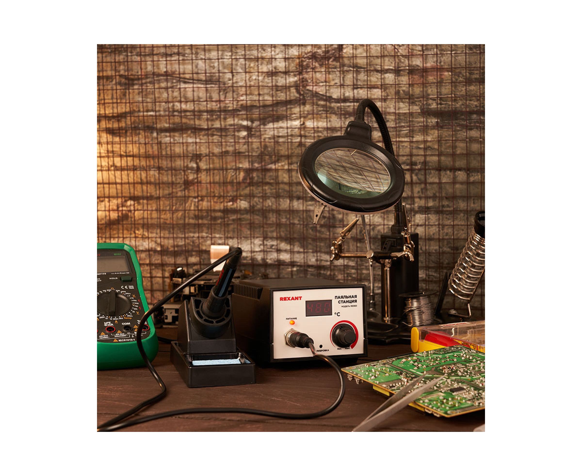 Паяльная станция REXANT R936D 12-0711 применима в монтаже или демонтаже электронных компонентов.