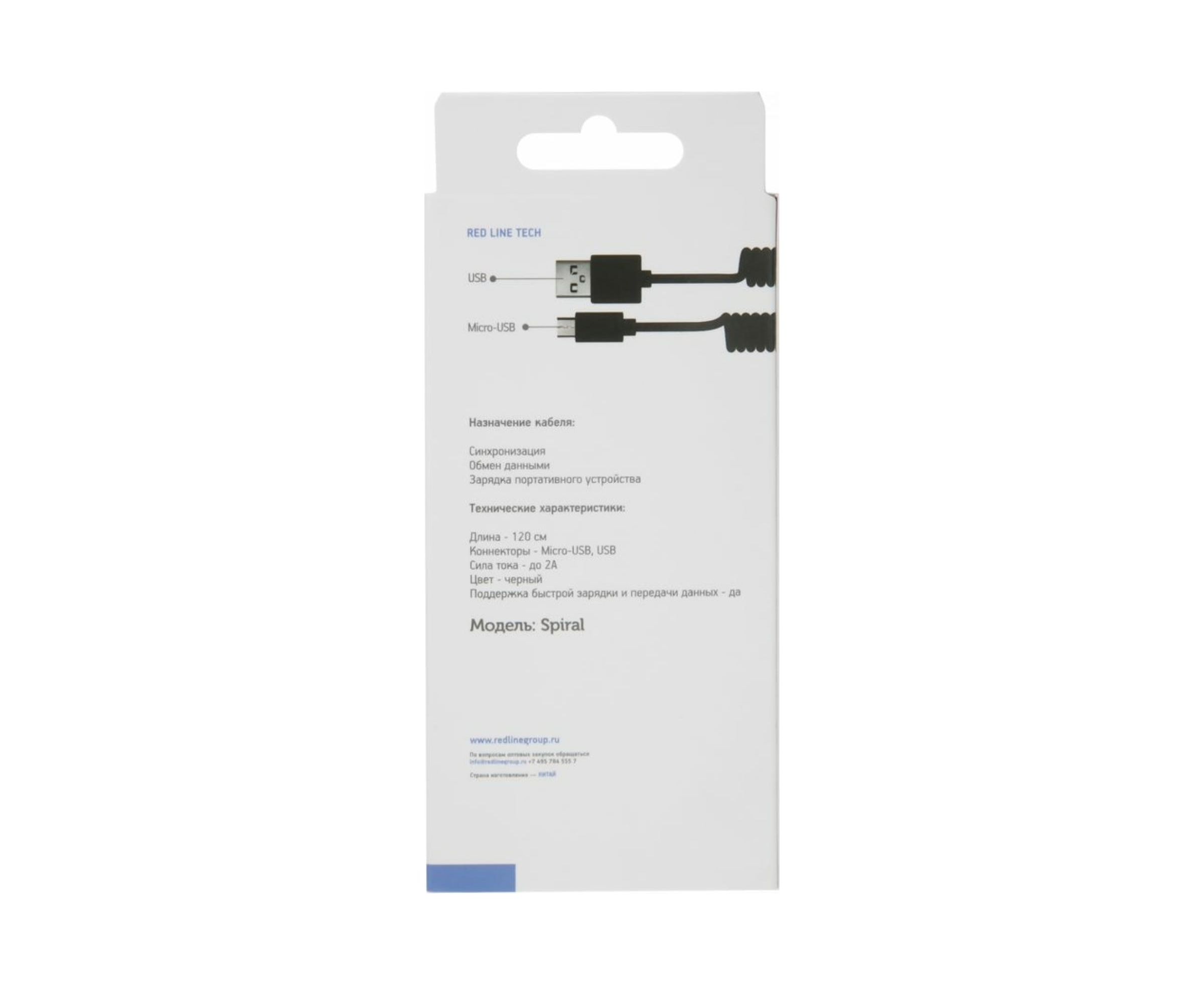 Дата-кабель Red Line Spiral USB - Micro USB, черный УТ000015709