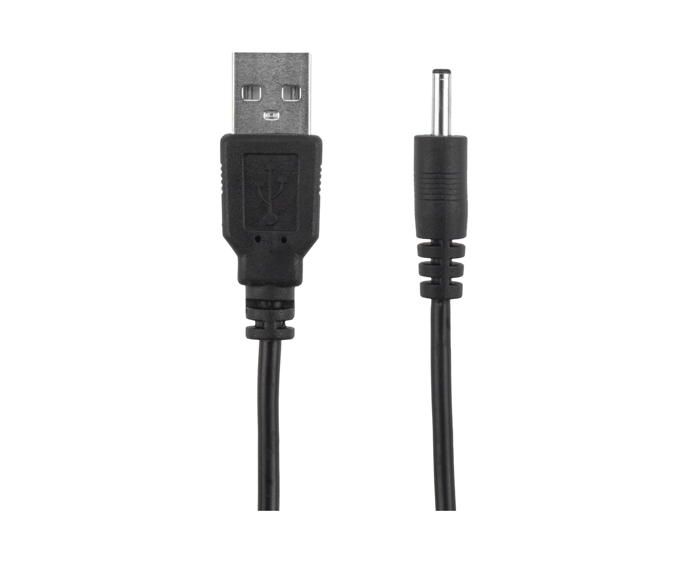 Кабель подключается с одной стороны к устройству с разъемом DC, а с другой - к USB разъему источника питания, которым в зависимости от ситуации может быть как специальная сетевая розетка с разъемом USB, так и сетевое зарядное устройство (СЗУ), автомобильного зарядного устройства (АЗУ) или внешний накопитель питания «power bank».