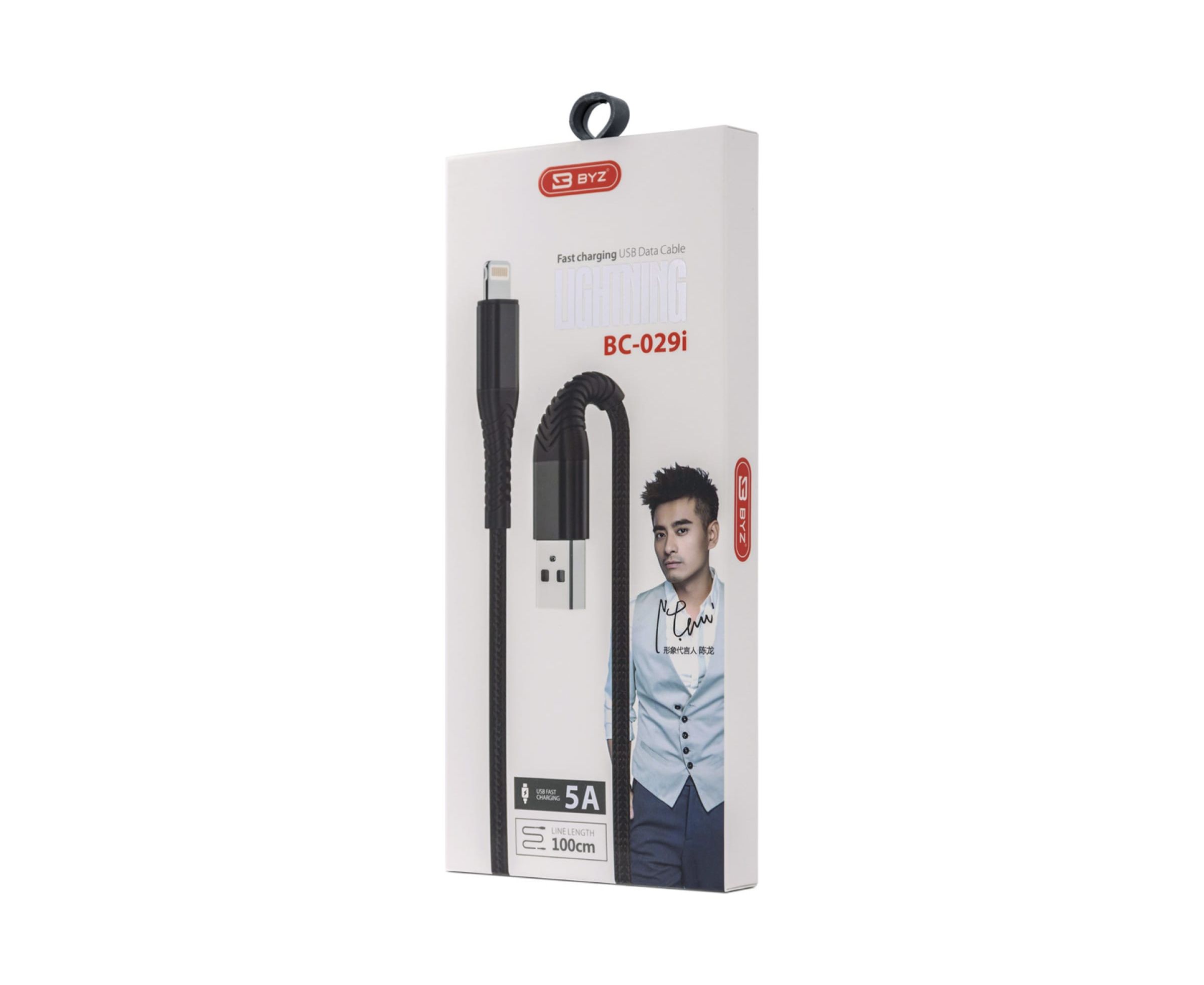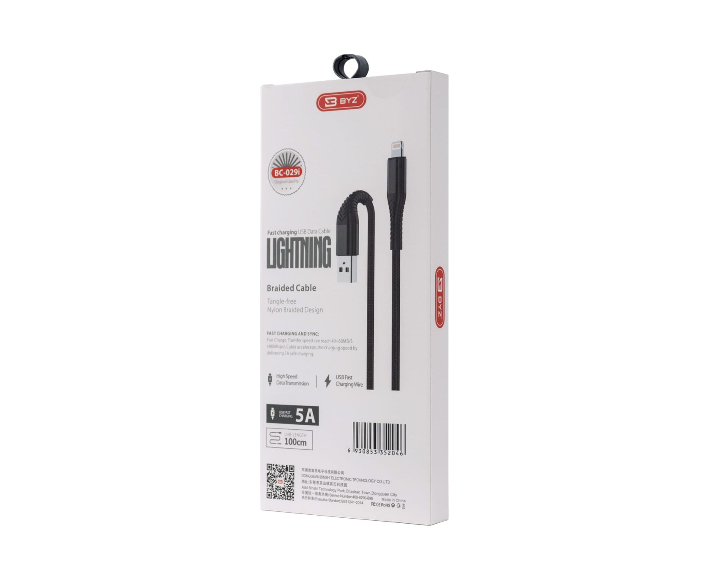 USB-кабель AM-8pin BYZ 1 метр, 5A, нейлон, чёрный, 23750-BC-029iBK