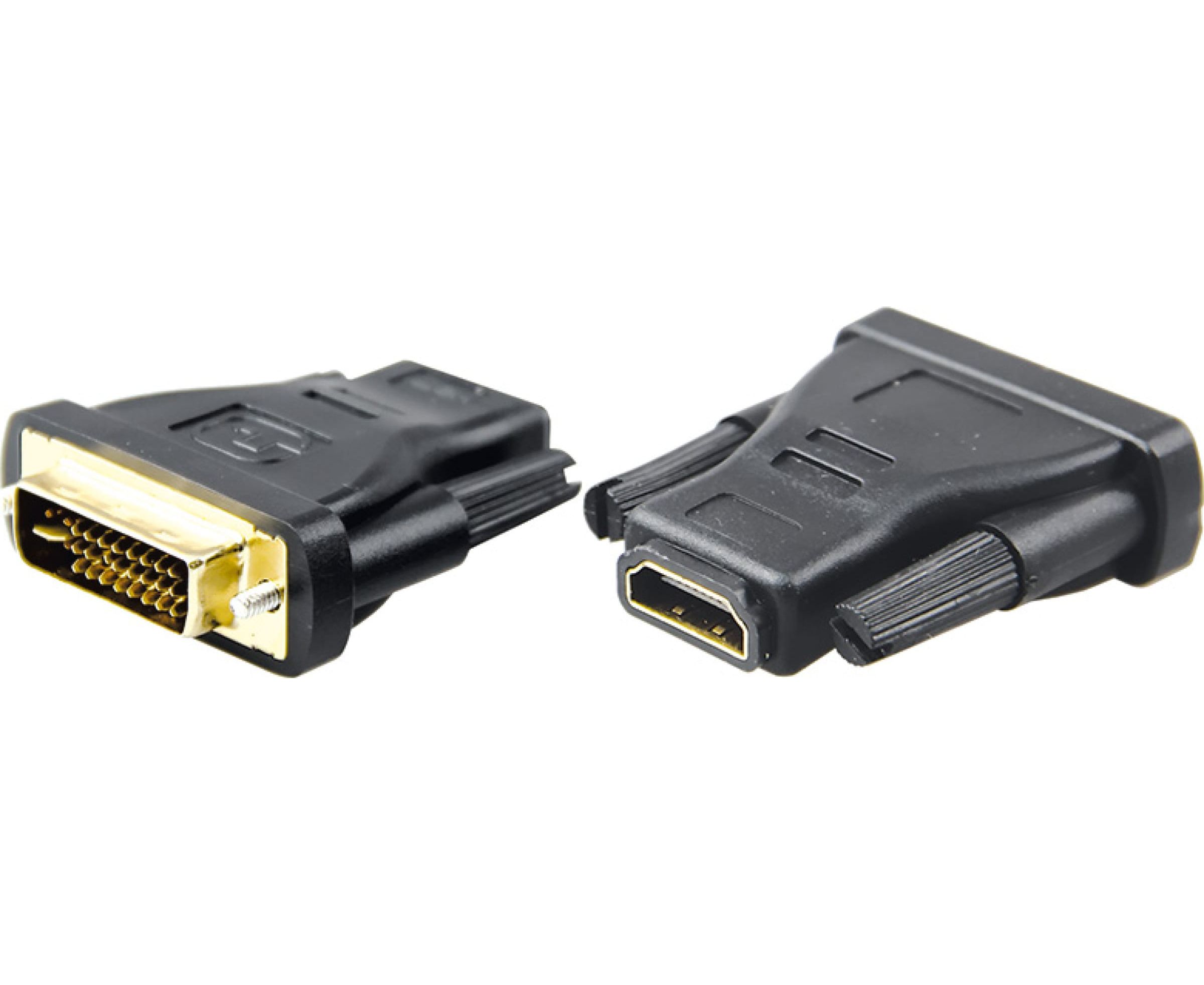 С одной стороны переходника расположен разъем гнездо HDMI, а с другой штекер DVI. На контакты разъемов нанесен слой золота 24 карата по технологии вакуумного напыления, обеспечивающий повышение качественных показателей изображения и звука, а также отсутствие помех при передаче сигналов.