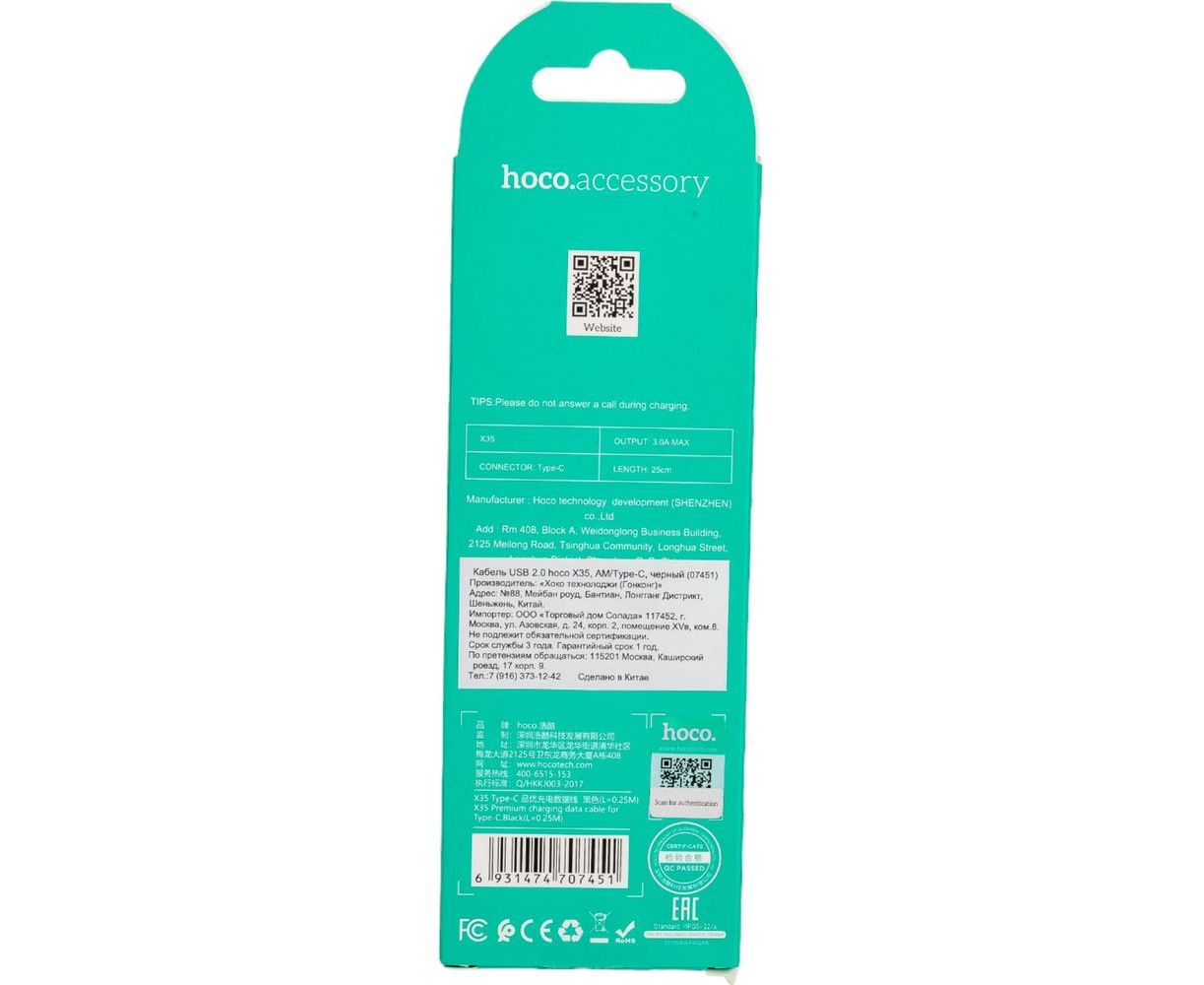 Кабель USB 2.0 Hoco X35, AM/Type-C, черный, 0,25м 6931474707451