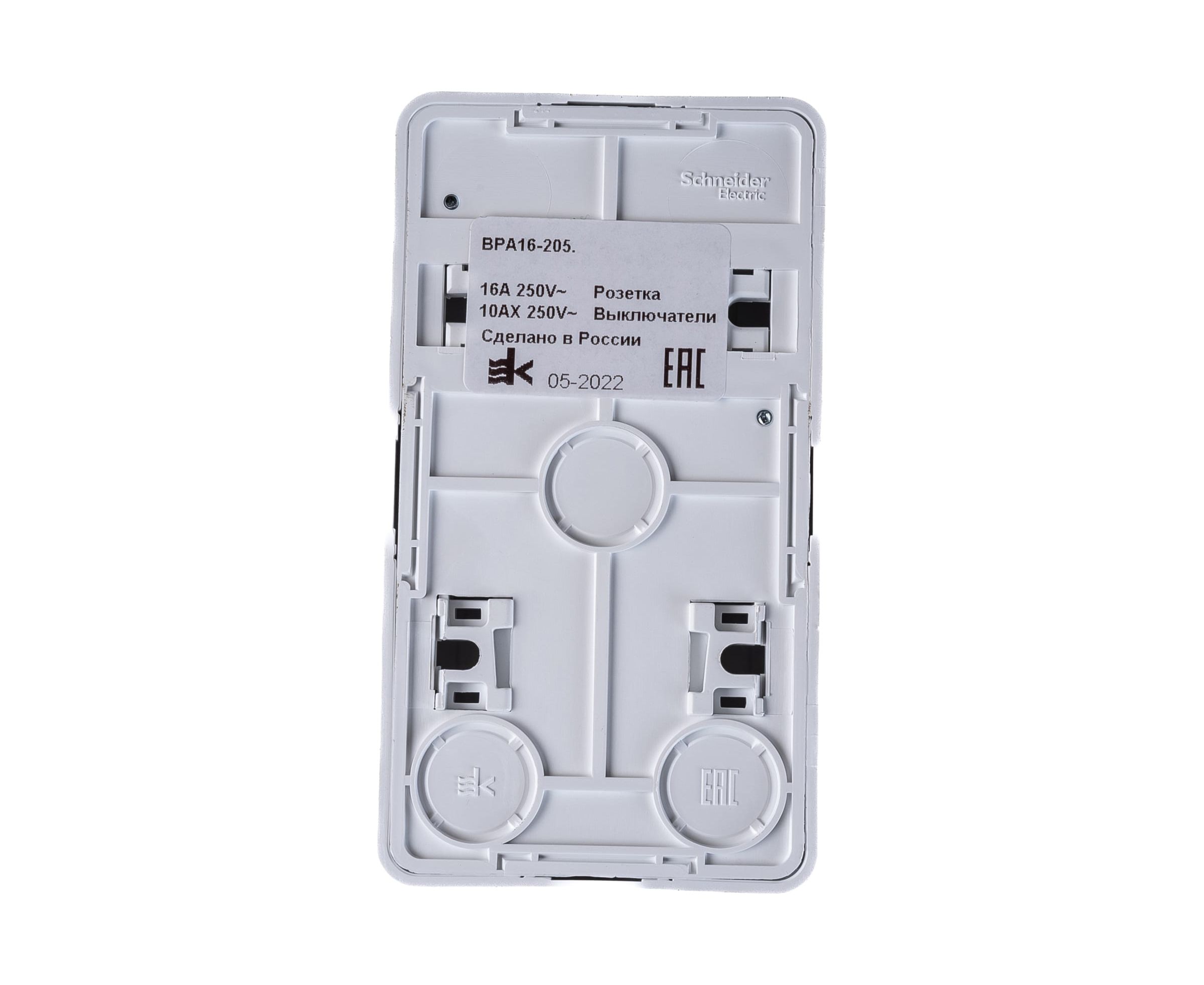 Блок 1-местная розетка + 2-клавишный выключатель Schneider Electric открытой проводки Этюд без заземления белый BPA16-205B