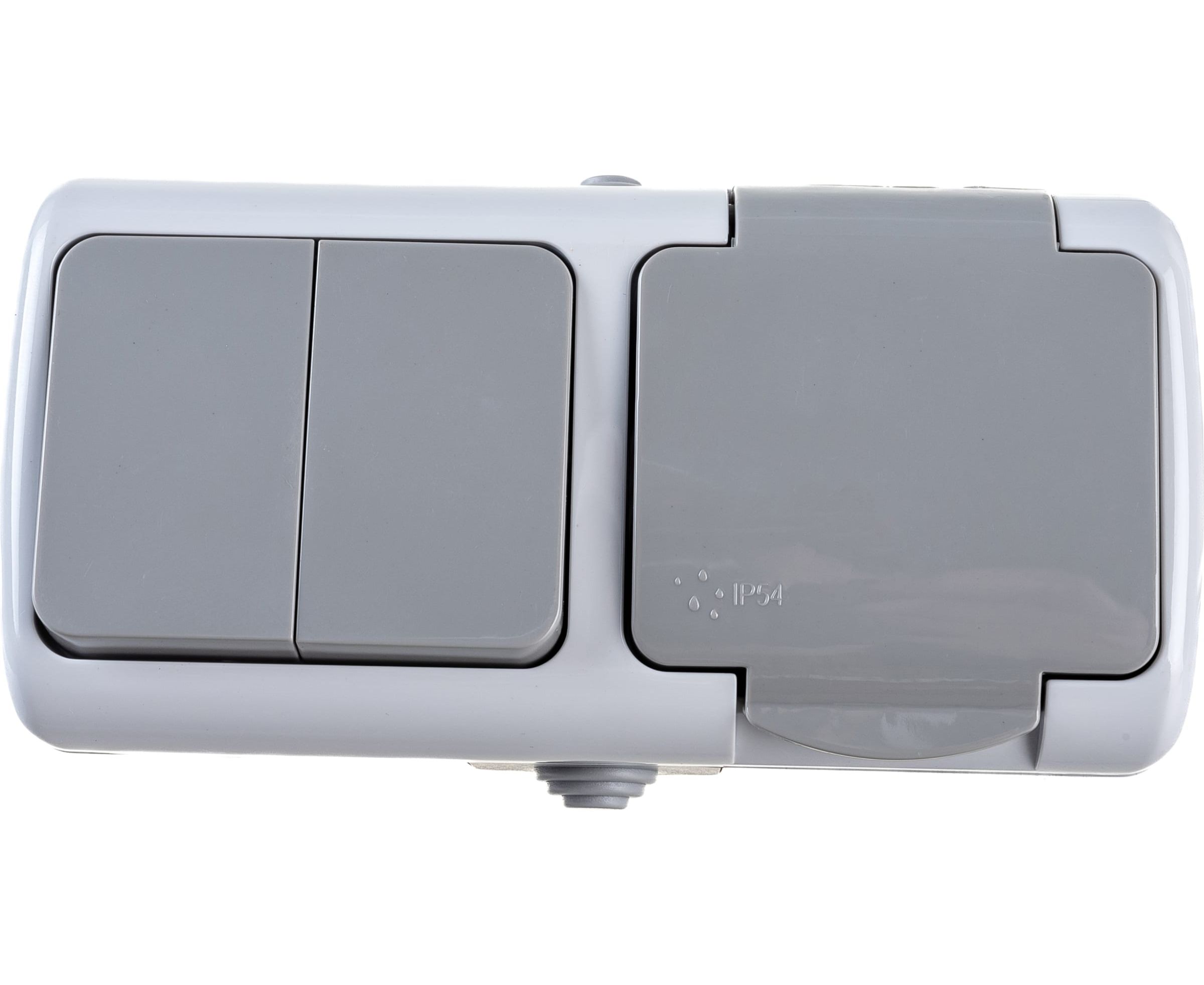 Блок розетка1-м 16А с крышкой и 2-кл выключатель EKF Мурманск IP54 серый SQEFRV16-052-30-540