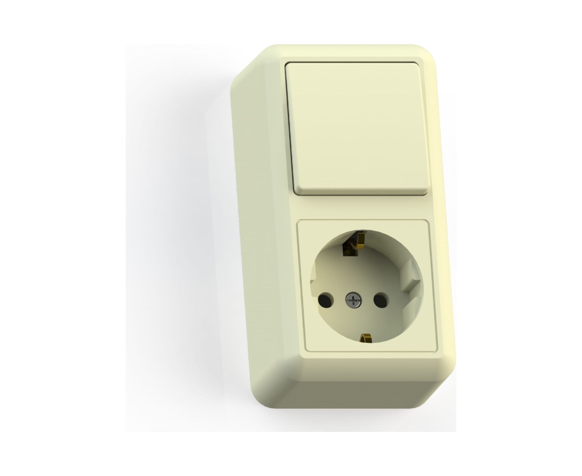 Комбинированный блок Кунцево-Электро ОПТИМА открытой установки, 1 клавиша, выключатель+розетка с з/к БКВР-405 с/к 8086