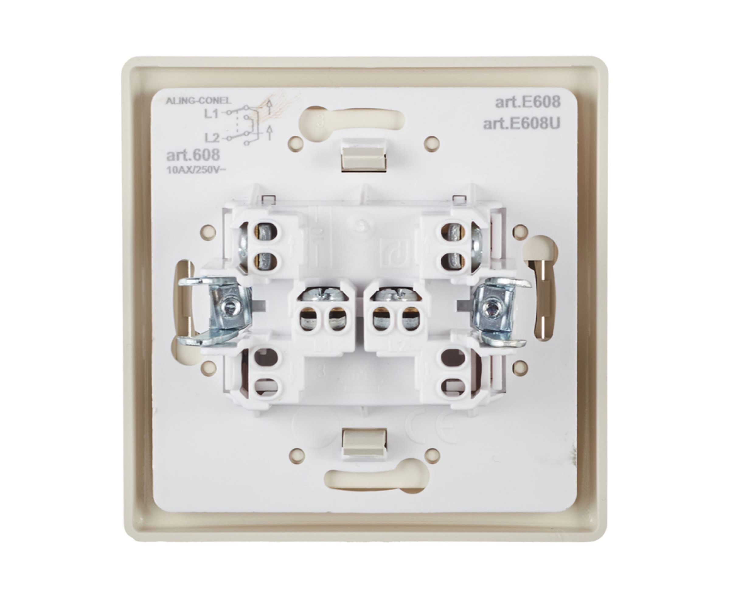 Перекрестный выключатель Aling-conel PRESTIGE 10AX 250В, бежевый 608.99 113069 - крестовой переключатель устанавливается в монтажную коробку R60 с помощью зажимов или винтов. Стандарт: IEC 60669-1.