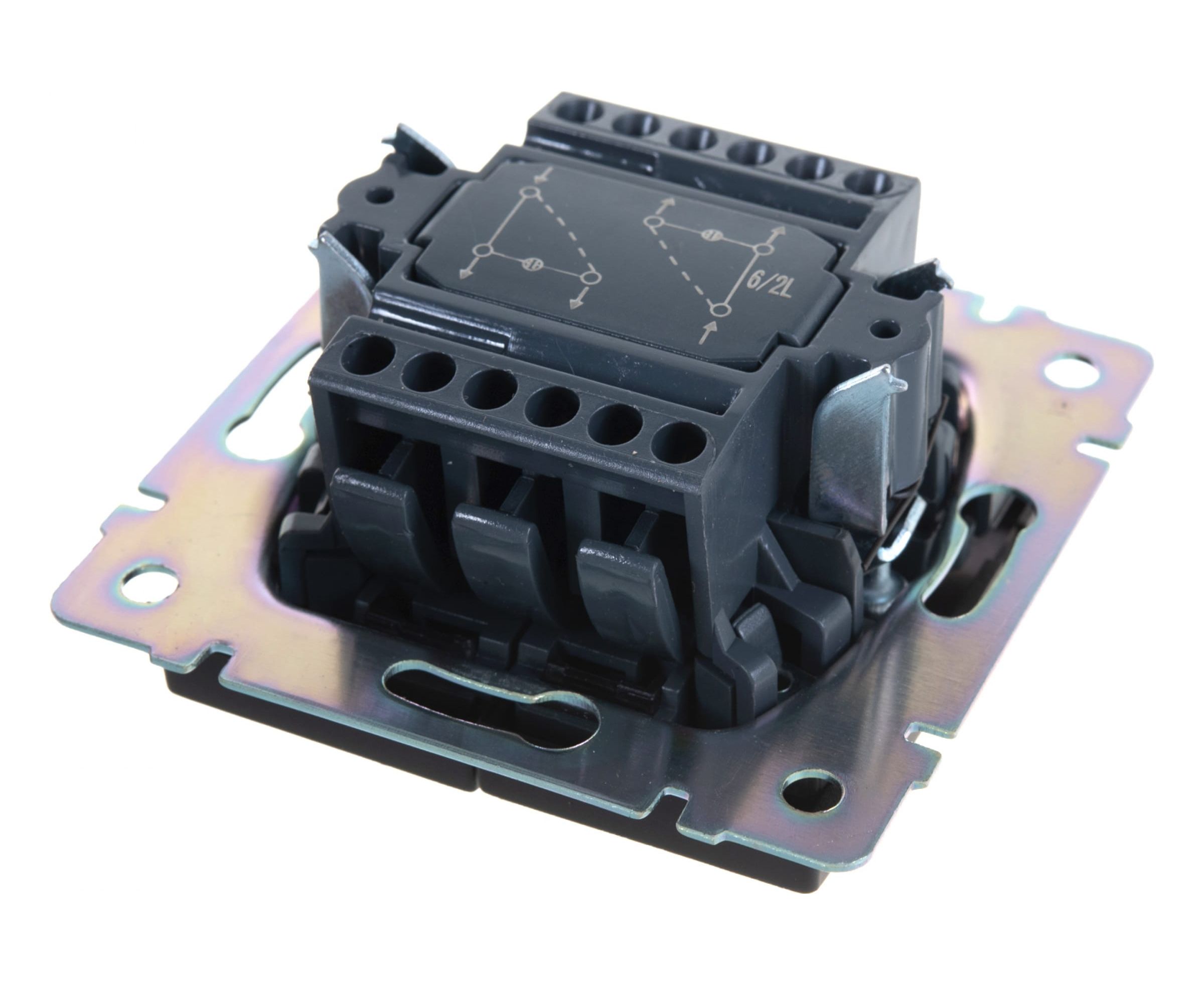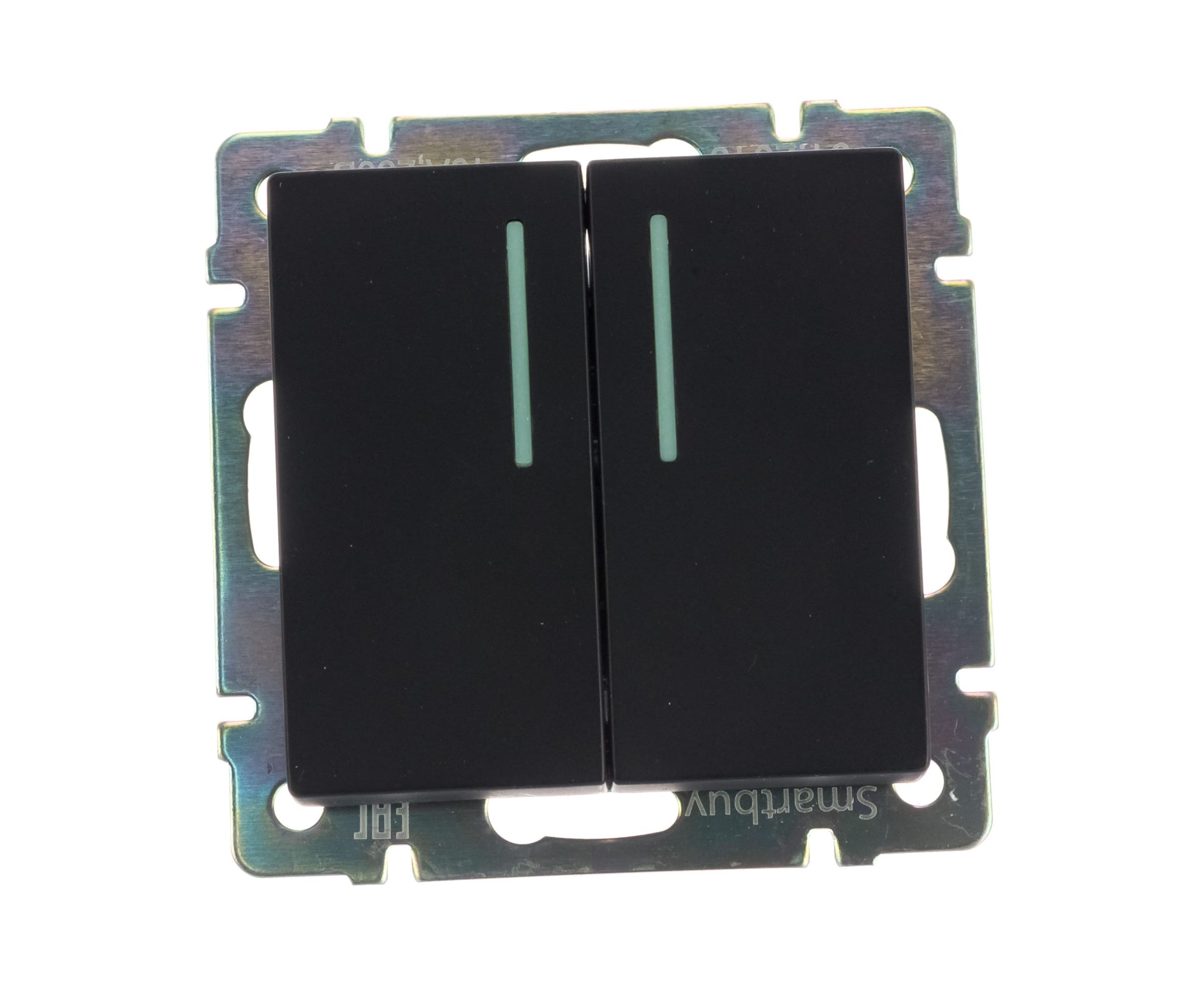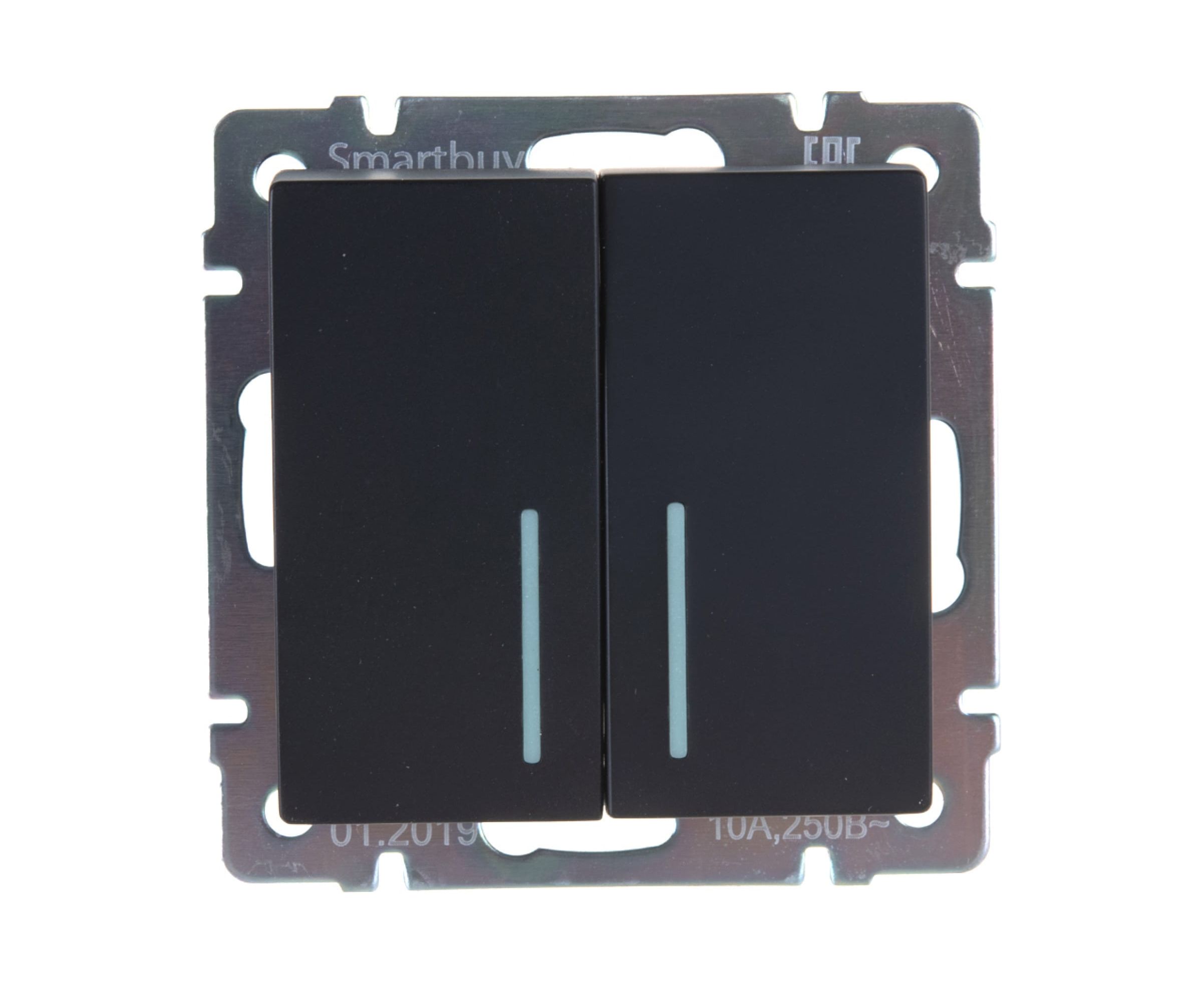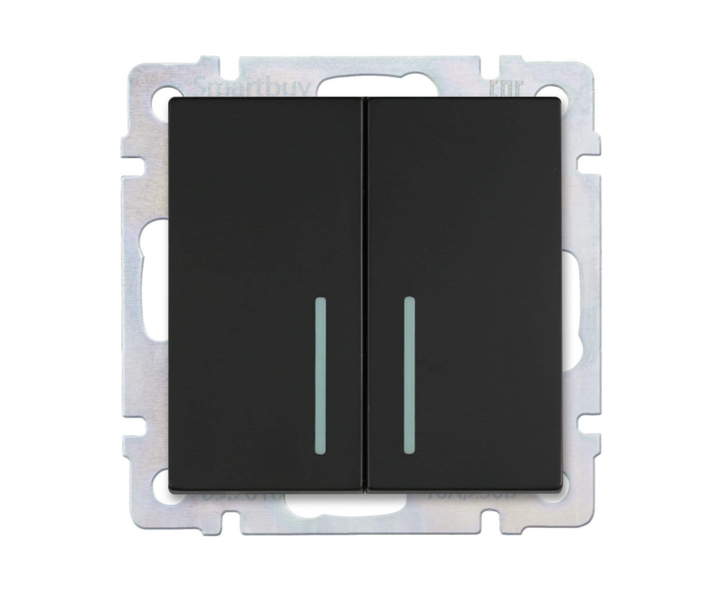 Проходной выключатель Smartbuy 2-клавишный с индикатором 10А черный Нептун SBE-05b-10-SW22-1