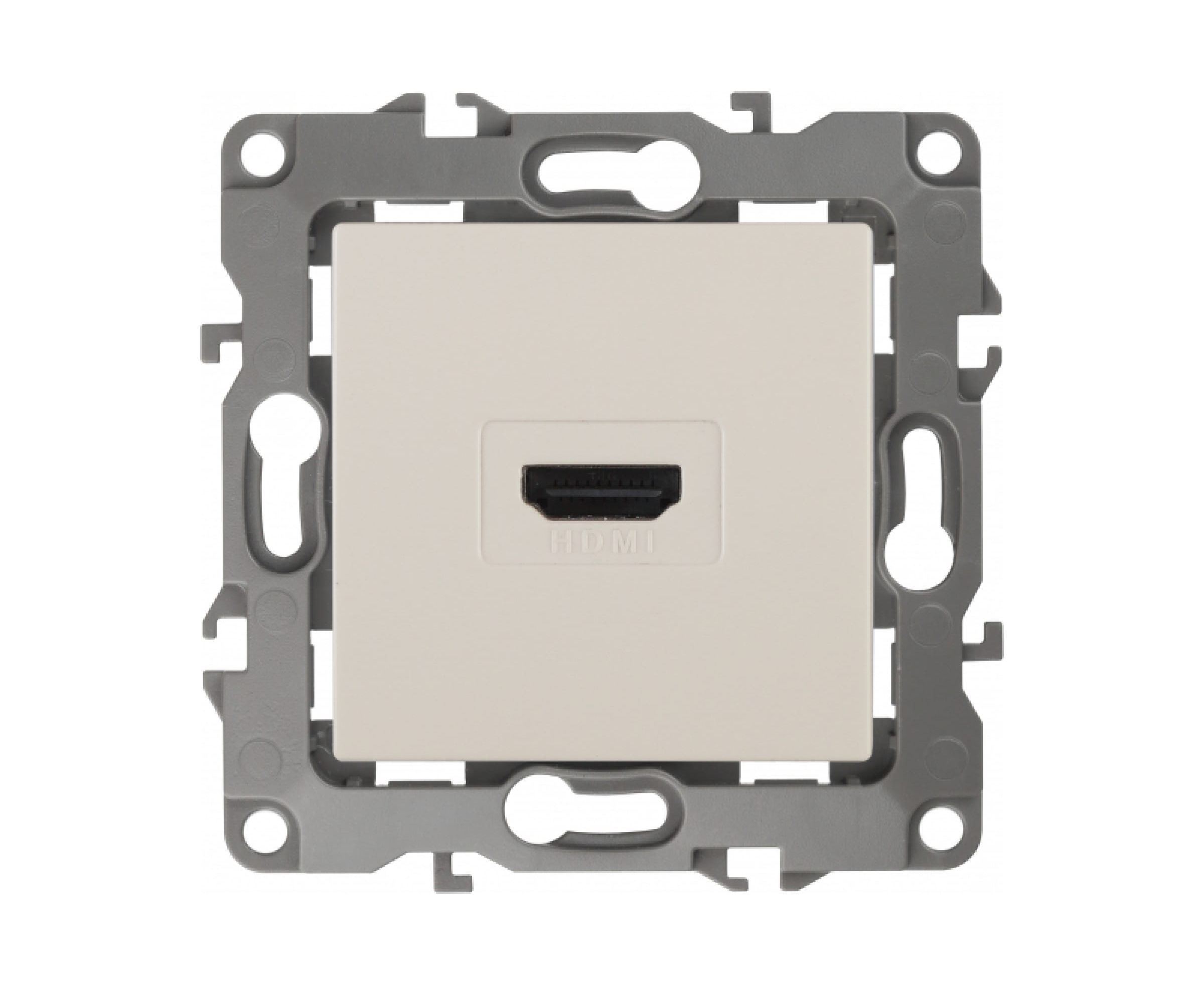 Розетка ЭРА 12-3114-02 HDMI, IP20, 12, слоновая кость Б0027482 сделана из поликарбоната. Монтаж в подрозетник производится и на лапки, и на винты. Рамки приобретаются отдельно.
