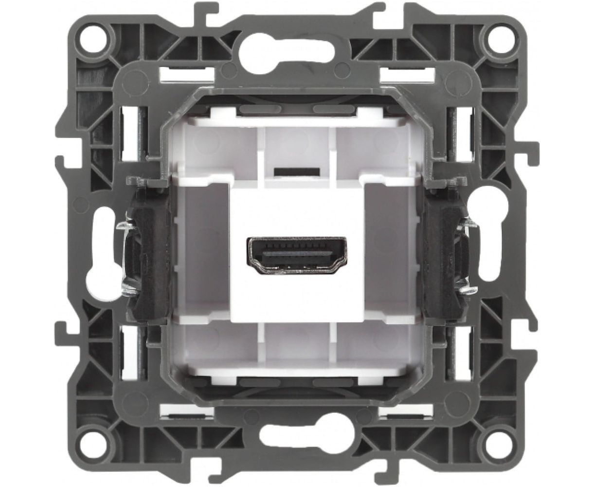 Розетка ЭРА 12-3114-12 HDMI, IP20, 12, графит Б0027487 сделана из поликарбоната. Монтаж в подрозетник производится и на лапки, и на винты. Рамки приобретаются отдельно.