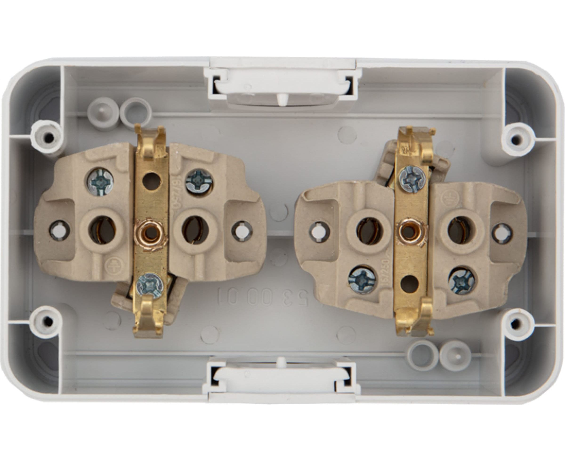 Двойная накладная розетка KRANZ керамика, горизонтальный блок с/з IP54 16А белая KR-78-0607