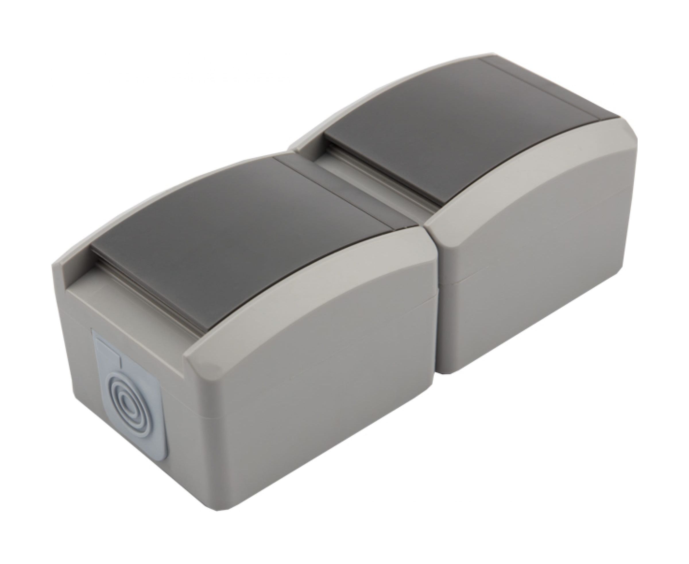 Двойная накладная розетка KRANZ вертикальный блок с/з IP54 16А серая KR-78-0615 предназначена для организации электроснабжения не только в сухом помещении, но и во влажной и пыльной среде.