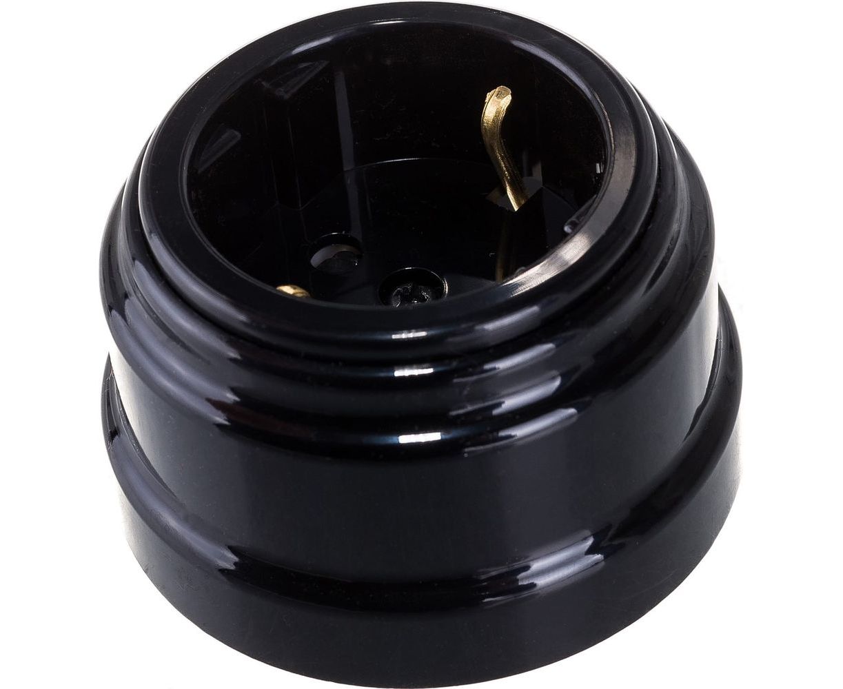 Розетка Bylectrica РА16-0206 1-местная с заз. контактом, со шторками 16А ОУ, серия РЕТРО, черный, РА16-0206 черный