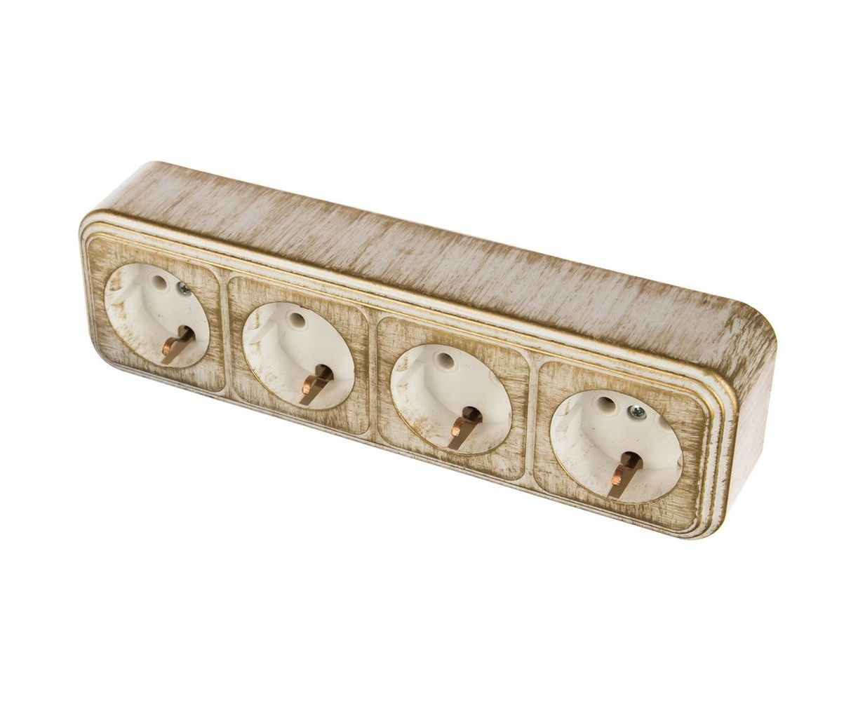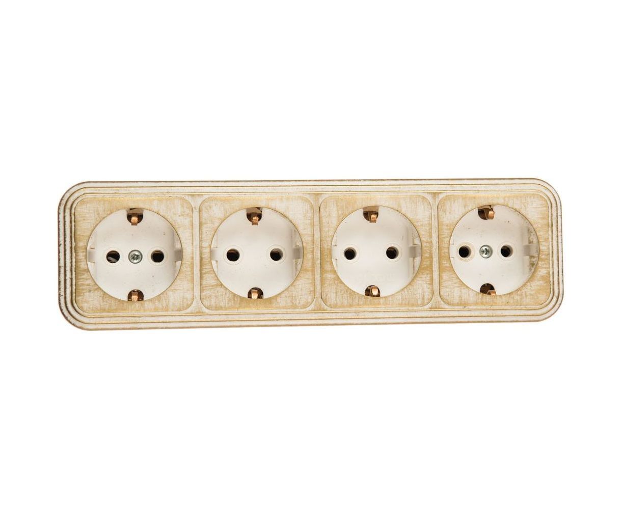 Розетка duwi о/п с з/к 4-местная серия Palazzo, белое золото патина 26441 5