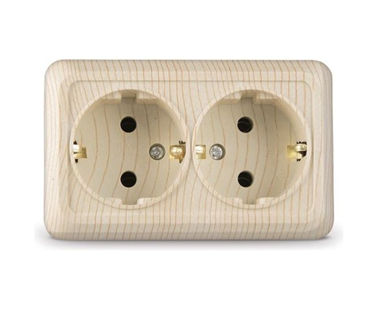 Розетка двухместная с/з UNIVersal Олимп сосна 5560865