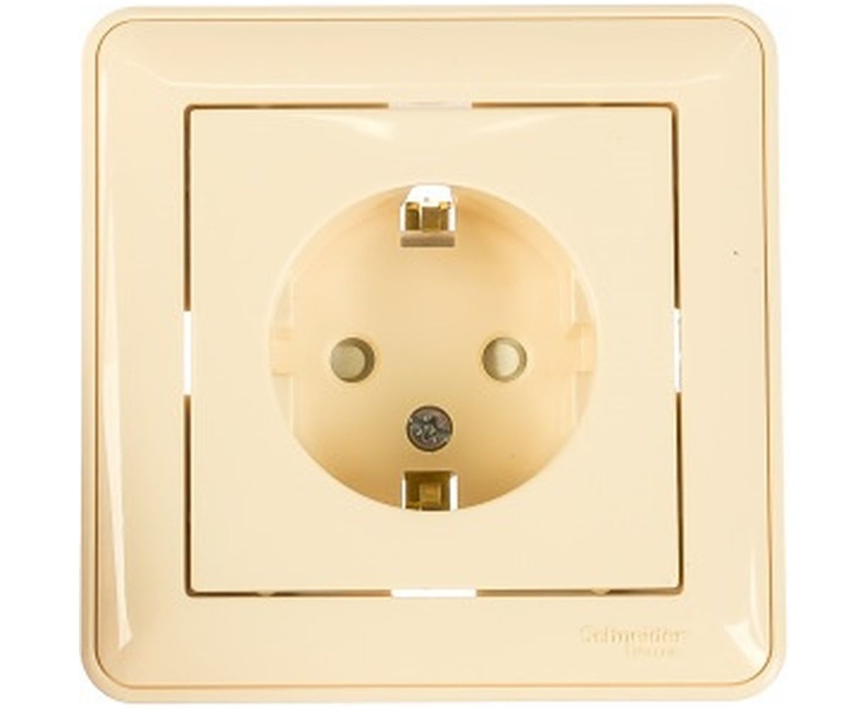 Розетка с заземлением, с защитными шторками и с рамкой, слоновая кость WESSEN 59 Schneider ELectric RS16-152-28