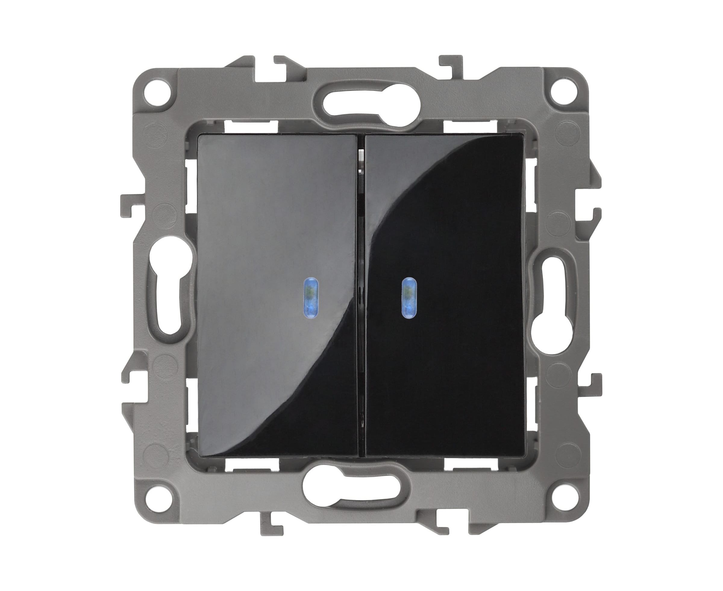 Двойной выключатель с подсветкой ЭРА 12-1105-06 10АХ-250В, IP20, 12, чёрный Б0014662