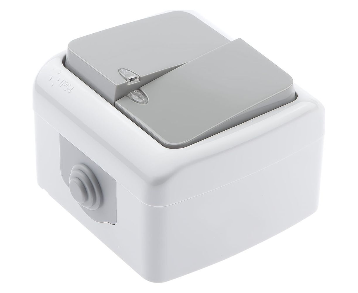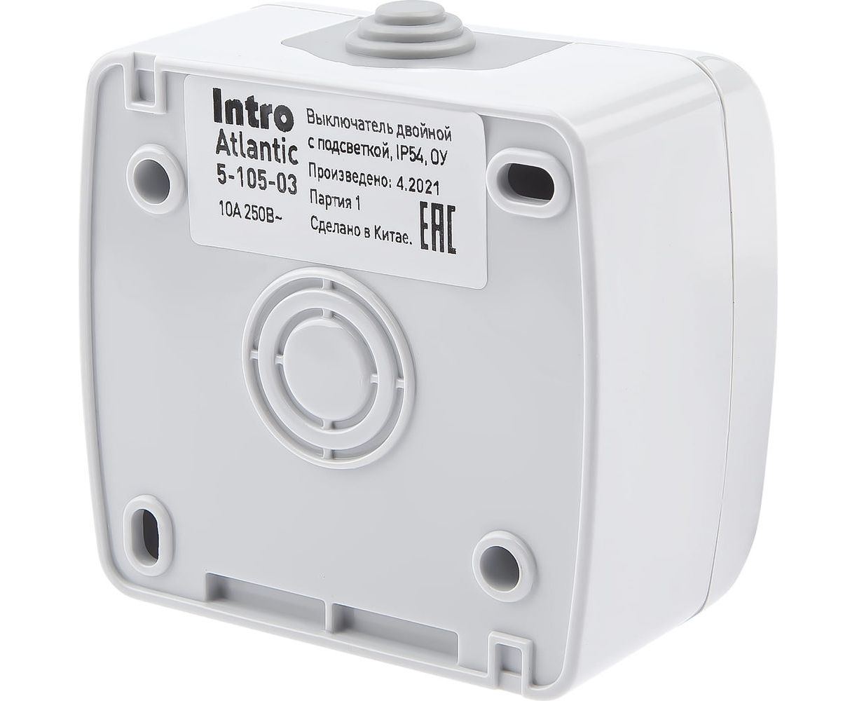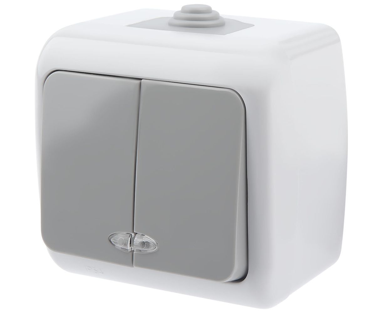 Выключатель Intro Atlantic 5-105-03 двойной с подсветкой 10А-250В открытой установки серый Б0050944