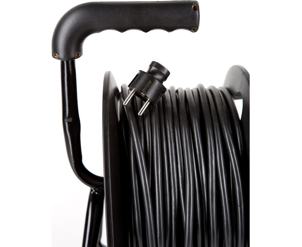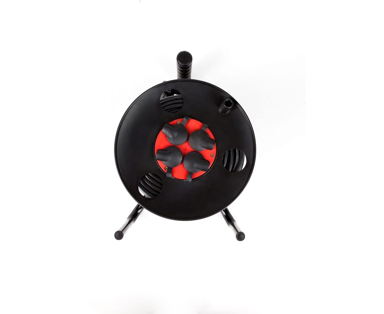 Удлинитель на катушке необходим там, где осуществляется работа с электрическим оборудованием, находящимся на большом расстоянии от сети электропитания. На корпусе катушки располагается устойчивая подставка и специальная рукоятка для удобства переноски удлинителя.