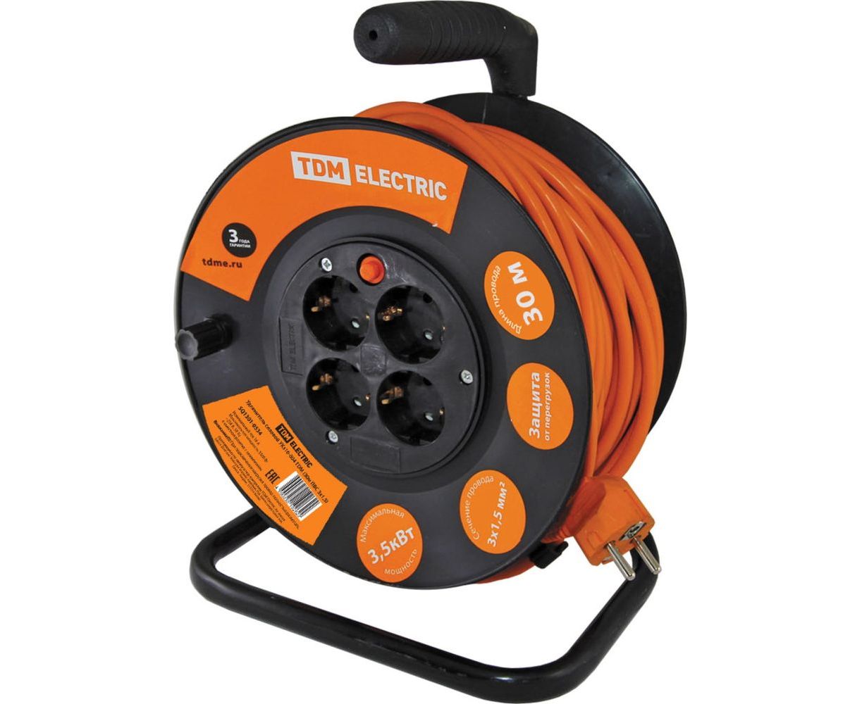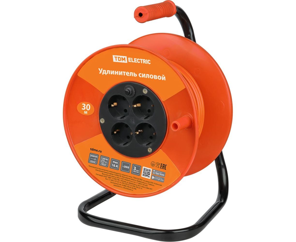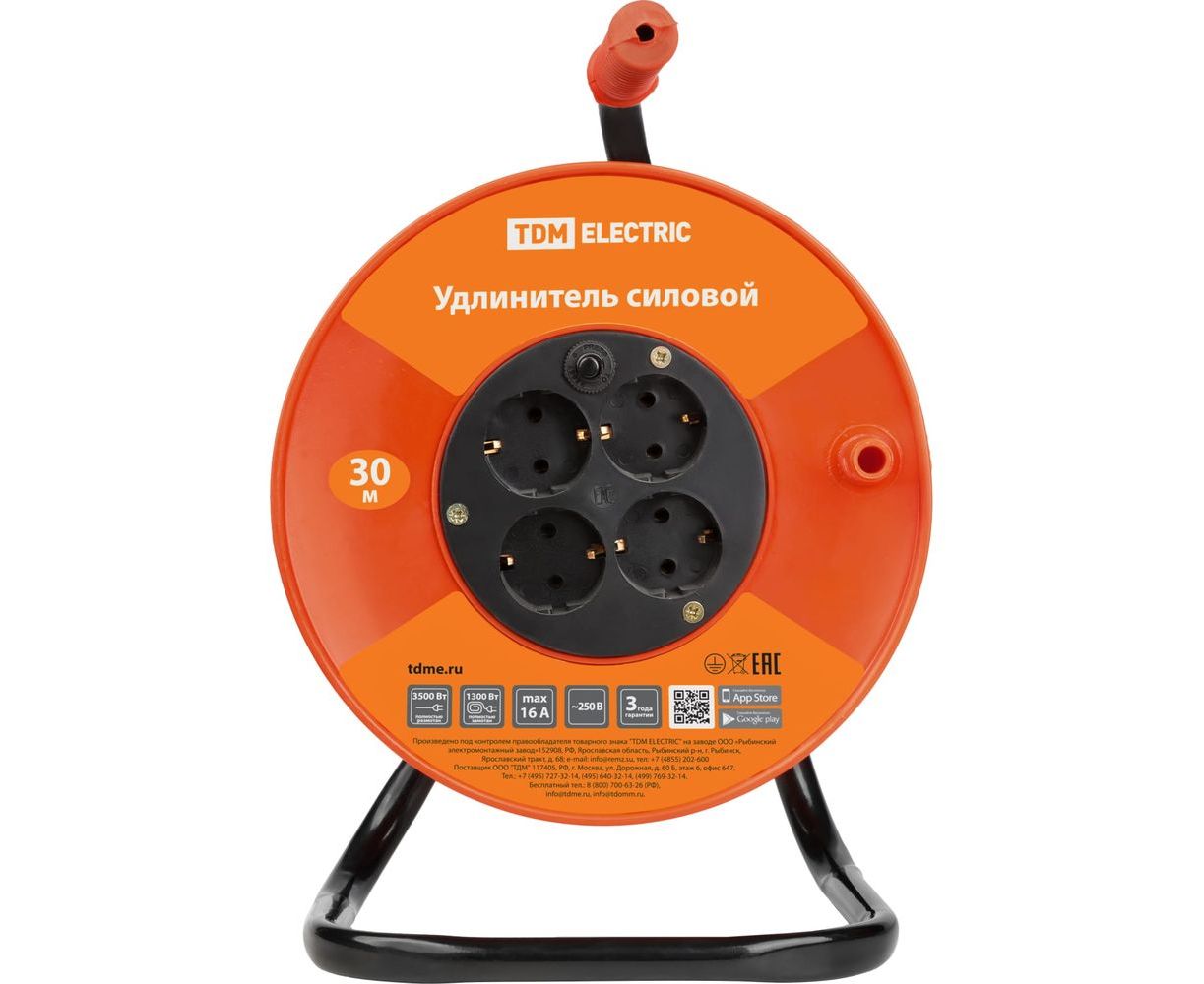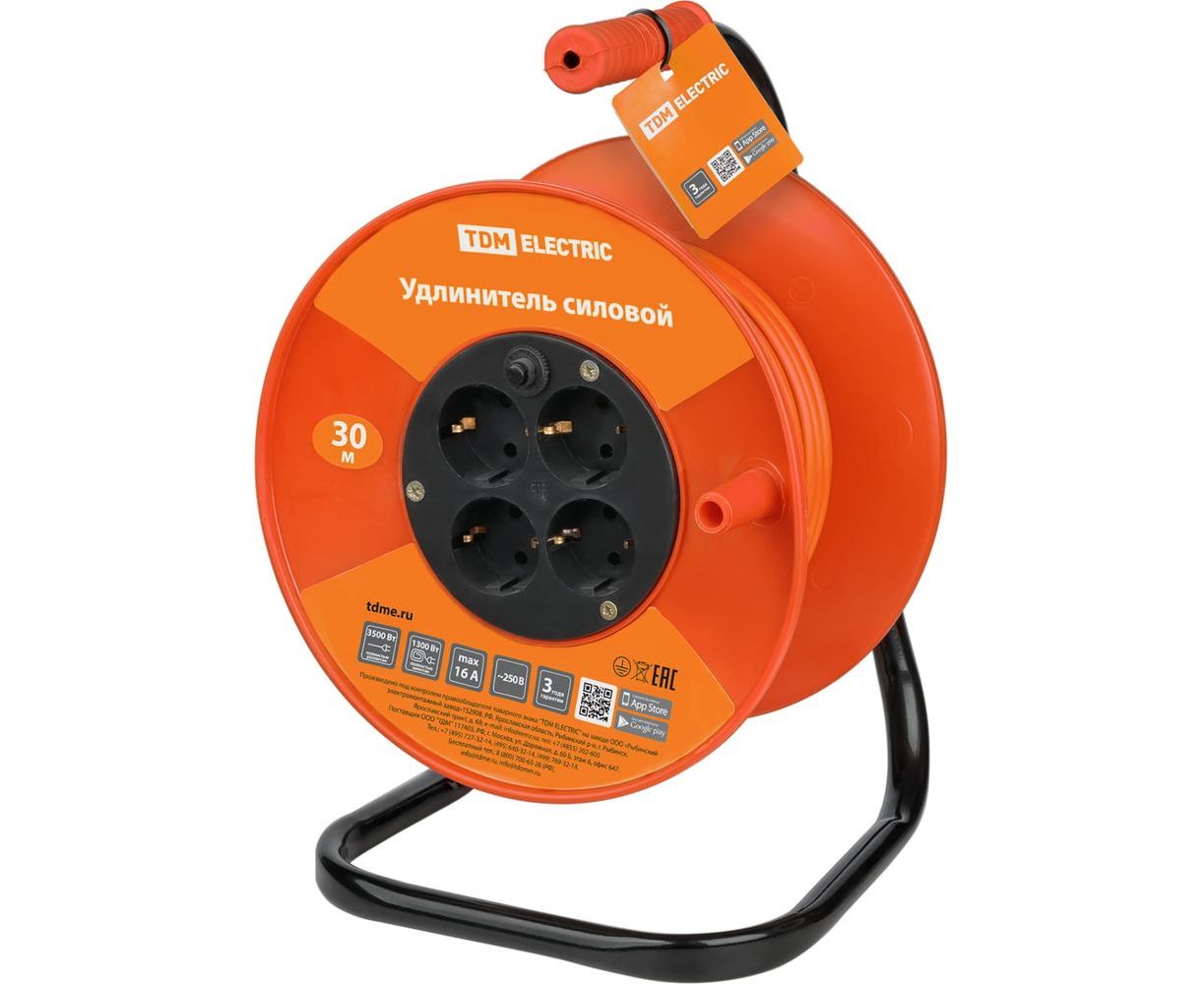 Силовой удлинитель TDM УКз16-004 4 места/30м, ПВС 3х1,5 SQ1301-0534