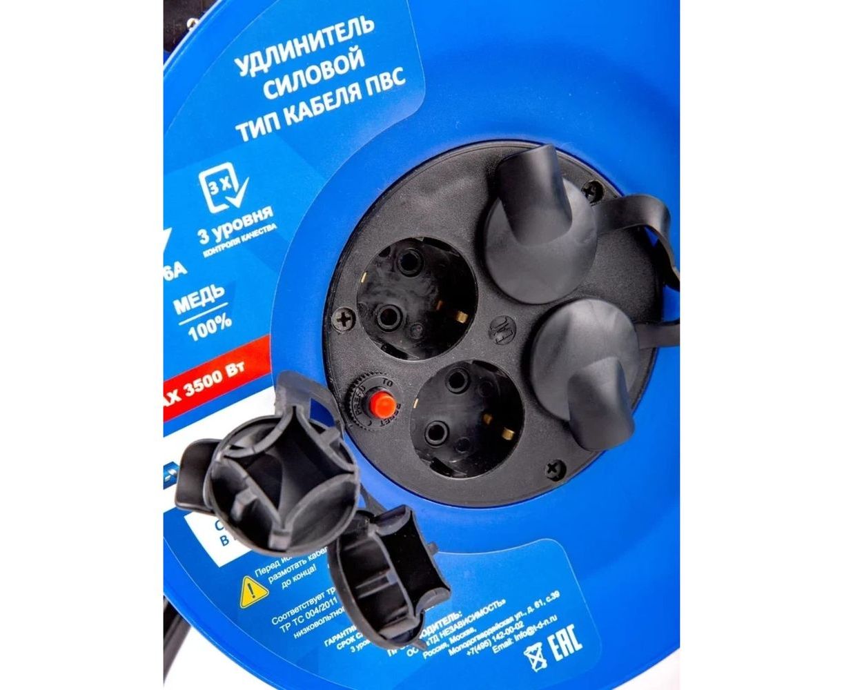 Удлинитель на катушке АТЛАНТ ПВС 3500 Вт 50м IP44, с термозащитой (с заземлением) 80104