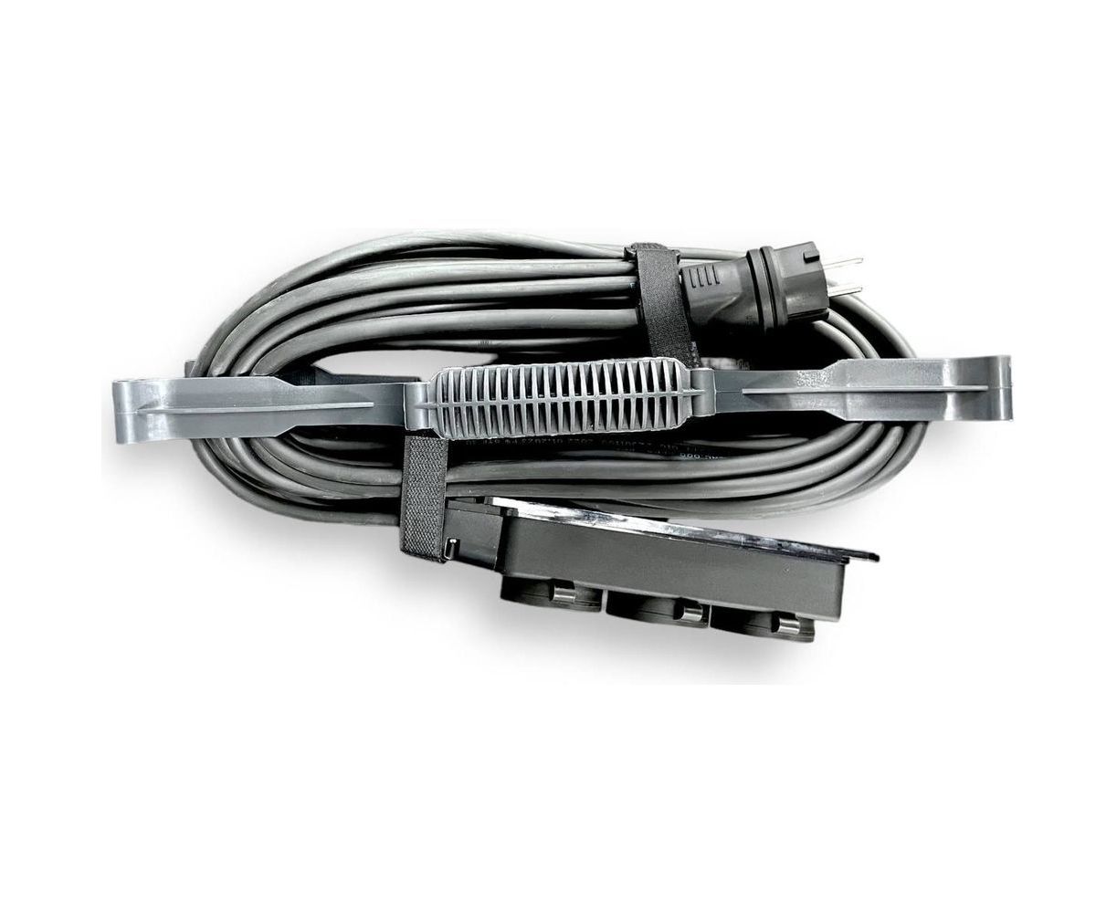 В состав изделия входит: вилка и колодка 3 гнезда с защитными крышками и заземлением, рамка для удобства намотки кабеля, хомуты на липучках для удобства эксплуатации и хранения в замотанном виде, морозостойкий кабель КГтп-ХЛ 3х1,5 мм ГОСТ 24334-2020 производства Калужского Кабельного Завода.