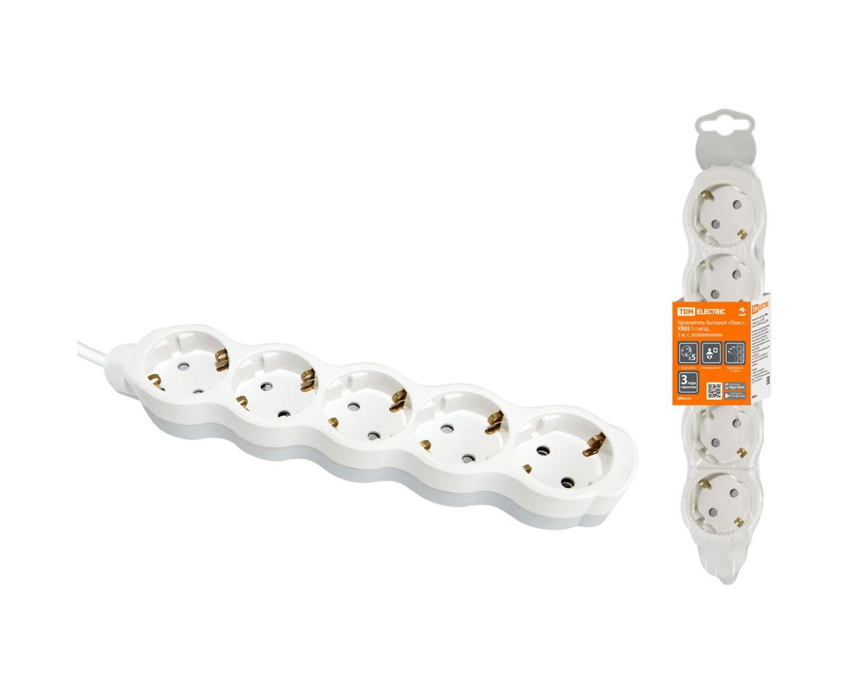 Бытовой удлинитель TDM Люкс УЛ05 5 гнезд, 3м, с/з, с з/ш, ПВС 3х1мм2 16А/250В бело-серый SQ1303-0239
