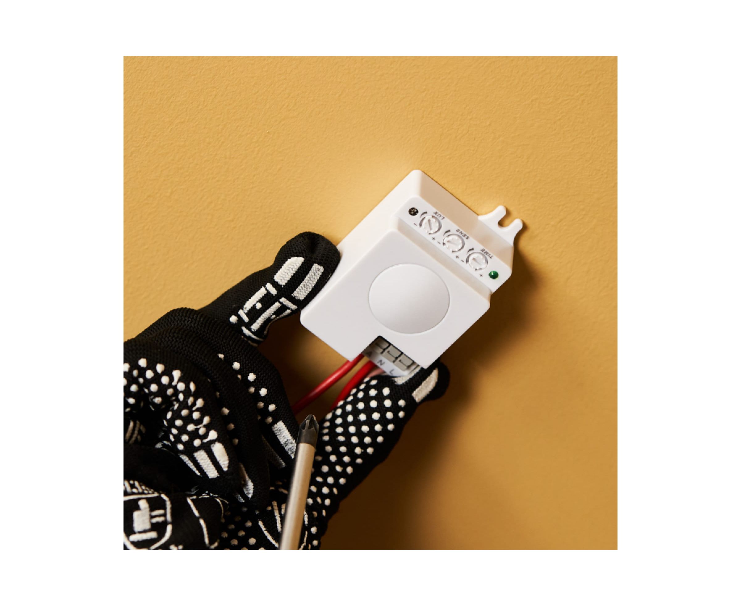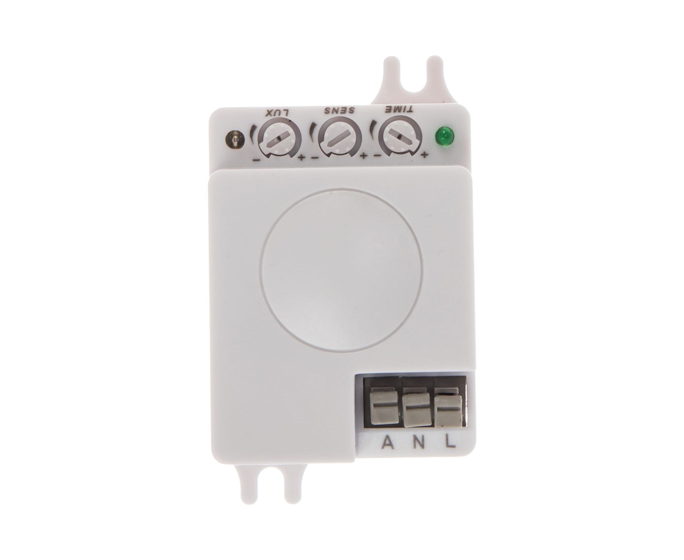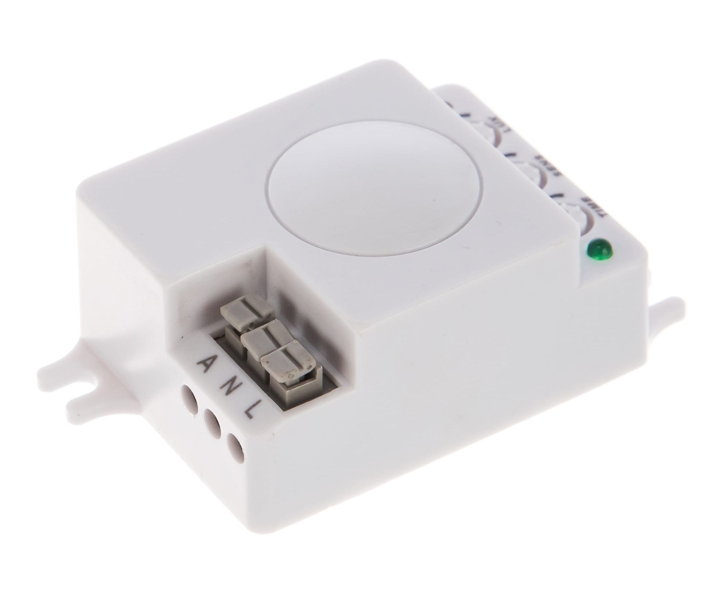Потолочный микроволновый датчик движения REXANT ДДПМ 02 11-9217 излучает электромагнитные волны высокой частоты, которые отражаются от окружающих объектов, затем регистрируются сенсором с микропроцессором, что обеспечивает включение освещения.
