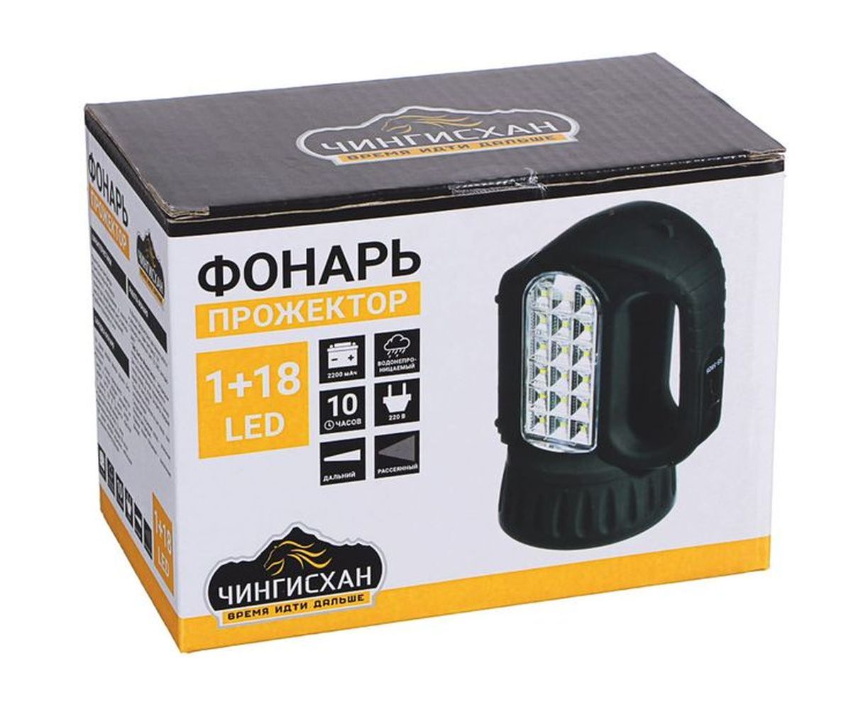 Аккумуляторный фонарь прожектор ЧИНГИСХАН 18 SMD, 1 Вт, LED, шнур 220В, резинопластик 198-041