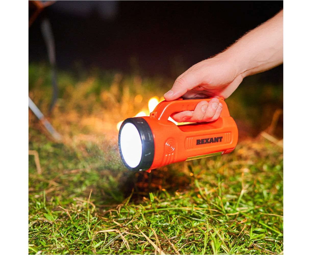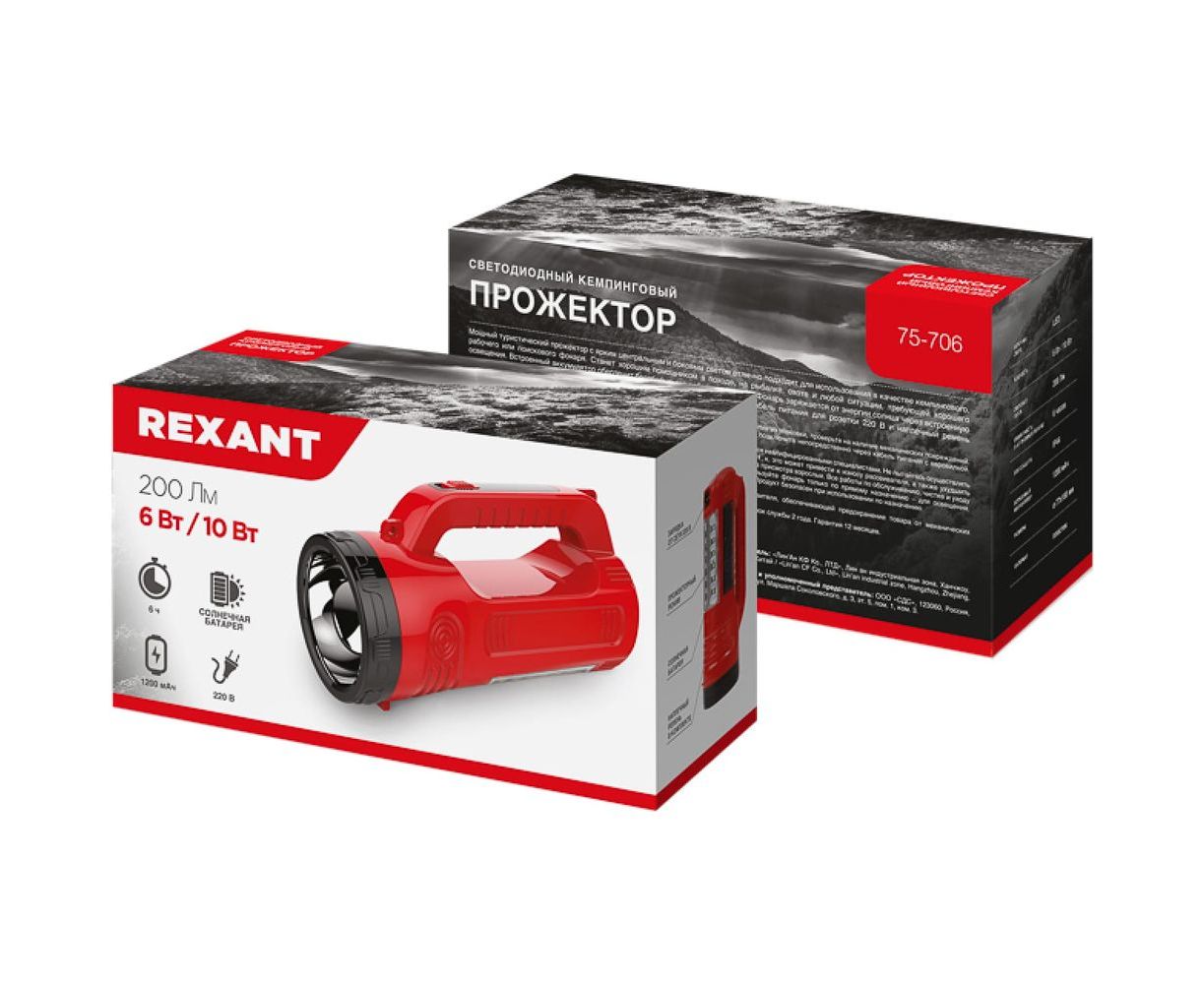 Аккумуляторный фонарь прожектор REXANT боковой свет, с солнечной батареей, индикатор заряда 75-706 мощный поисковый туристический прожектор с ярким центральным и боковым светом. Отлично подходит для использования в качестве рабочего, поискового или кемпингового фонаря.
