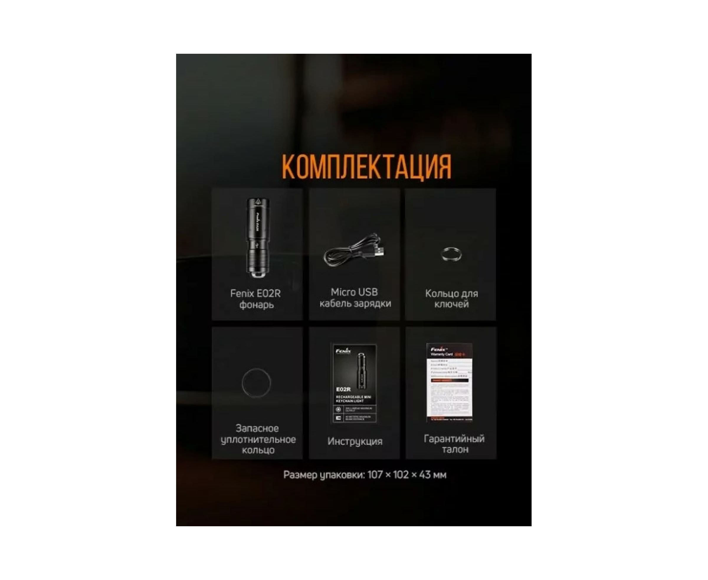 Фонарь Fenix E02R черный e02rbk