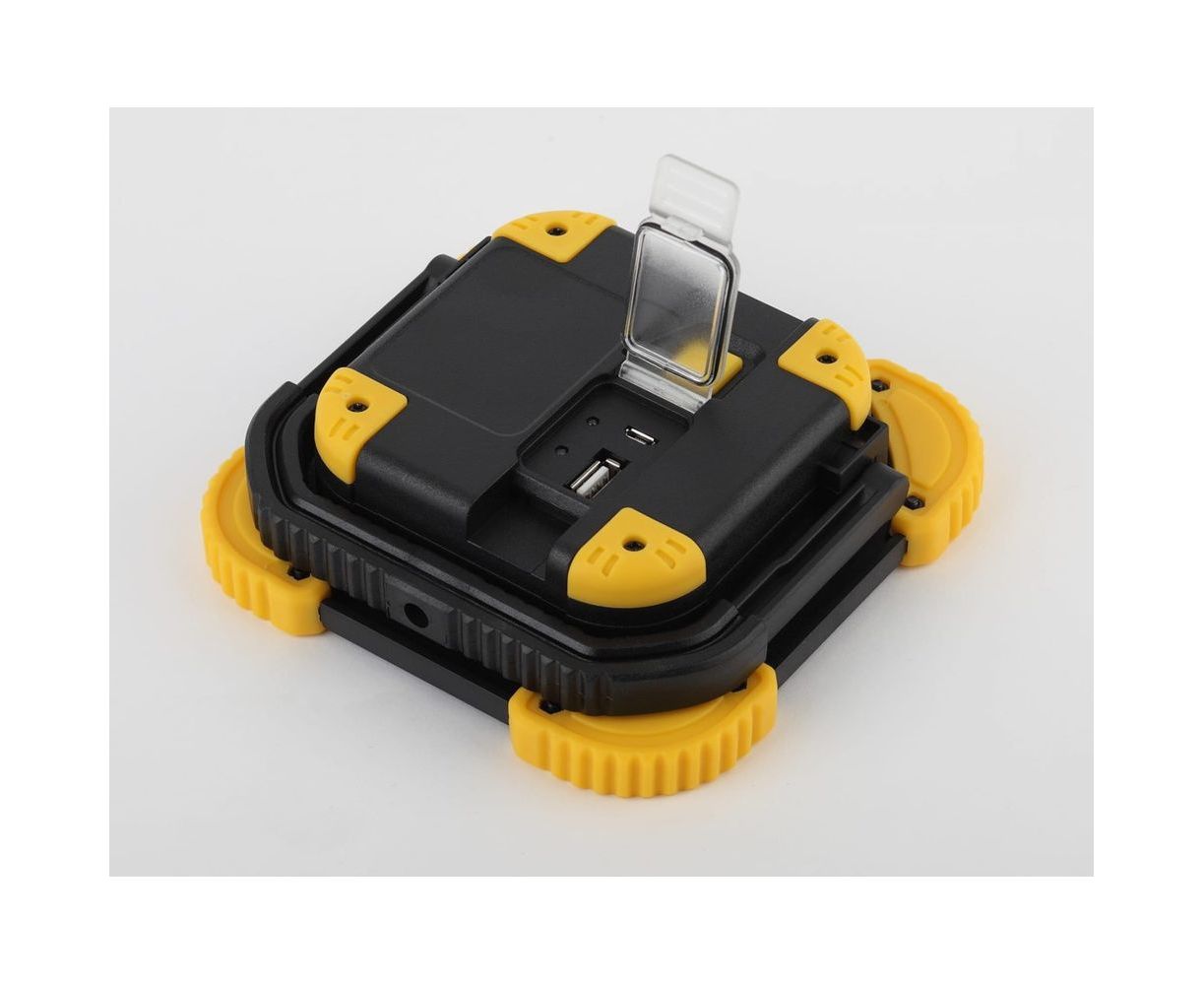 Надежность походного светильника обусловлена корпусом из ударопрочного пластика с прорезиненными вставками по бокам. Дальность луча в 210 м подарит Вам качественное яркое освещение. Направленный свет достигается за счет COB светодиода, а заливной широкий с помощью LED платы. 2 режима работы позволят настраивать свечение на свой вкус. Главное преимущество фонарика 25 часов непрерывной работы. Более того, модель имеет USB гнезда для подзарядки не только самого устройства, но и мобильных телефонов. Аккумуляторный фонарь имеет подвижную ручку. Это позволяет носить устройство с собой либо использовать в качестве подвесного светильника.