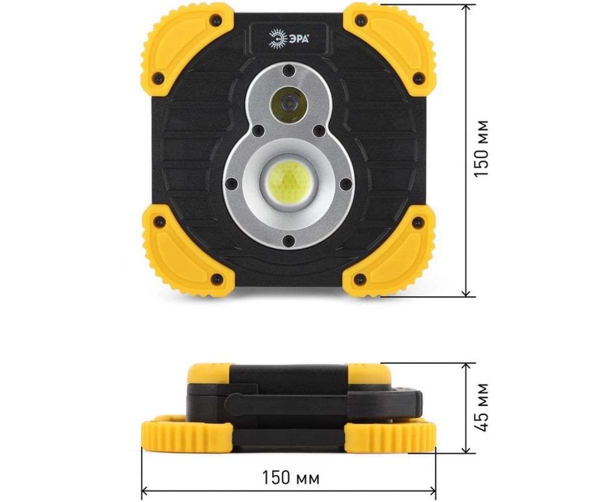 Фонарь-прожектор ЭРА PA-801 серия Практик 10Вт COB, 3,3 Ач, диммер, IPX6, PowerBank, коробка Б0036614 - идеальный выбор для тех, кому нужно всё и сразу. Светодиодный фонарь имеет размеры 15,5х15,5. Это экономит пространство и без труда позволяет брать фонарик в путешествие или на работу.