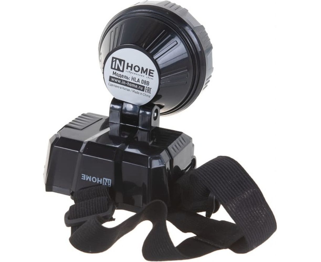 Налобный аккумуляторный фонарь IN HOME HLA 08B LED, 150Lm, 9ч, 2 режима, з/у 230В, черный 4690612031897