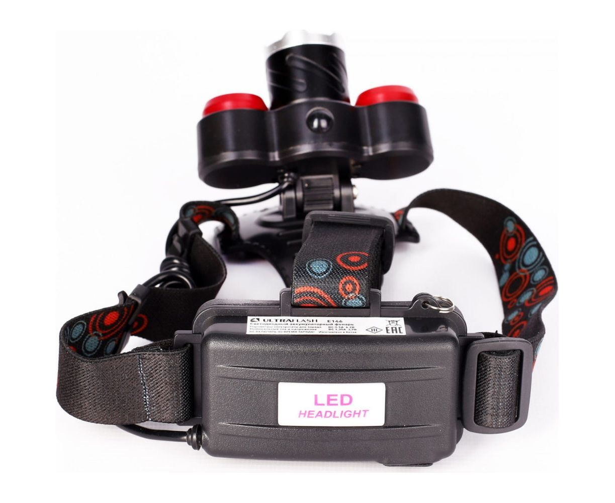 Налобный фонарь Ultraflash E146 (аккумулятор 3,7В, черный, 3LED, 5 Вт, фокус, 2 ак. 4 режима, бокс са) 14684