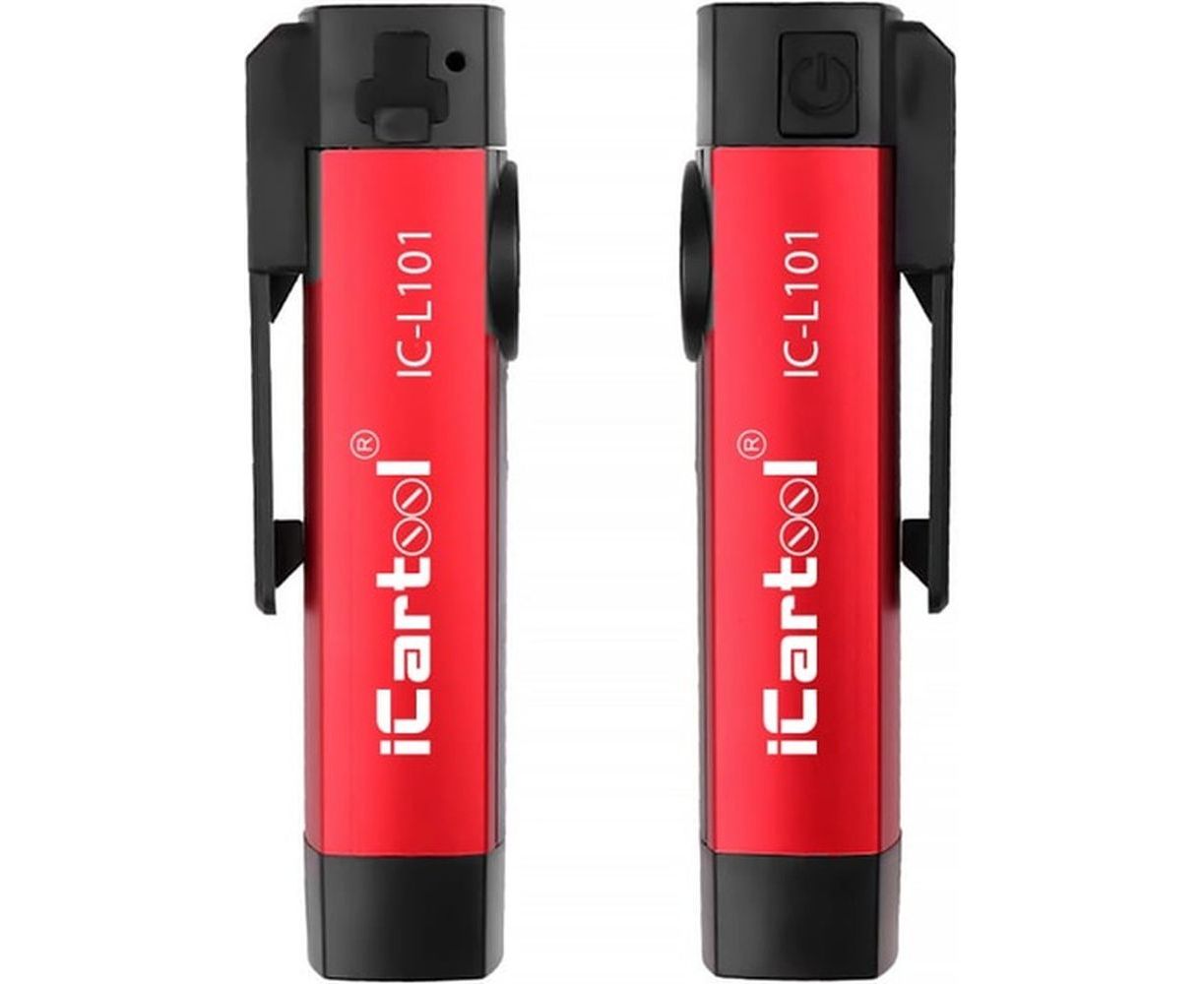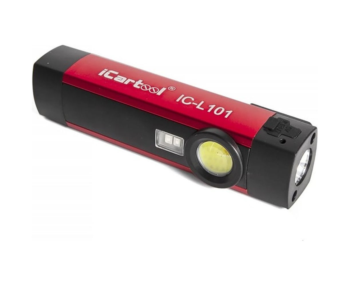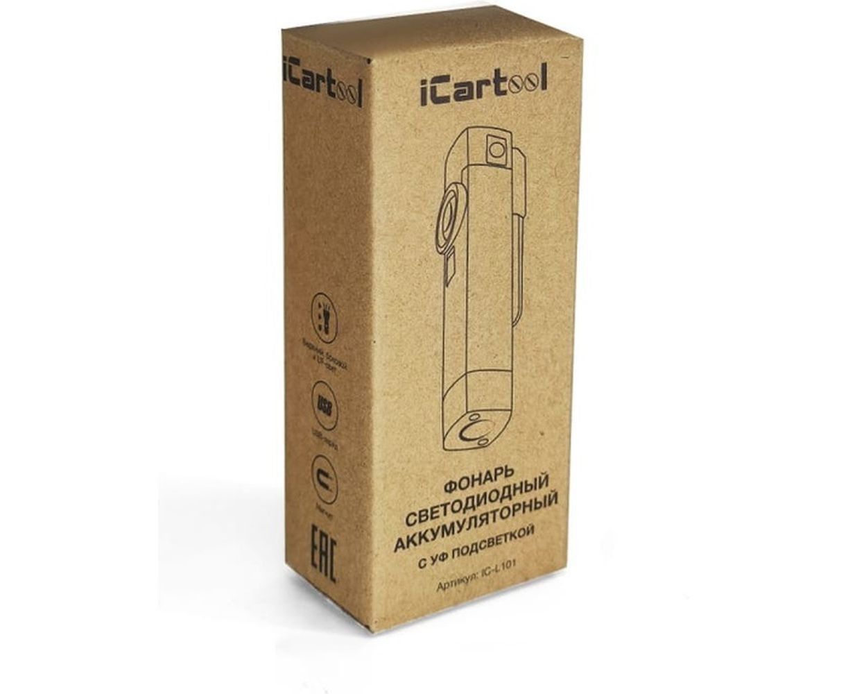 Светодиодный аккумуляторный фонарь iCartool с УФ подсветкой IC-L101 оснащен встроенным аккумулятором и ультрафиолетовой подсветкой. Имеет компактный ударопрочный корпус из высококачественного пластика и стали, а 2 встроенных магнита позволяют закрепить фонарь на любой металлической поверхности. На торце корпуса расположена кнопка переключения режимов освещения: основного направленного (световой поток 250 Лм), торцевого рассеянного (70 Лм), УФ-подсветки, что позволяет использовать фонарь для широкого спектра задач.