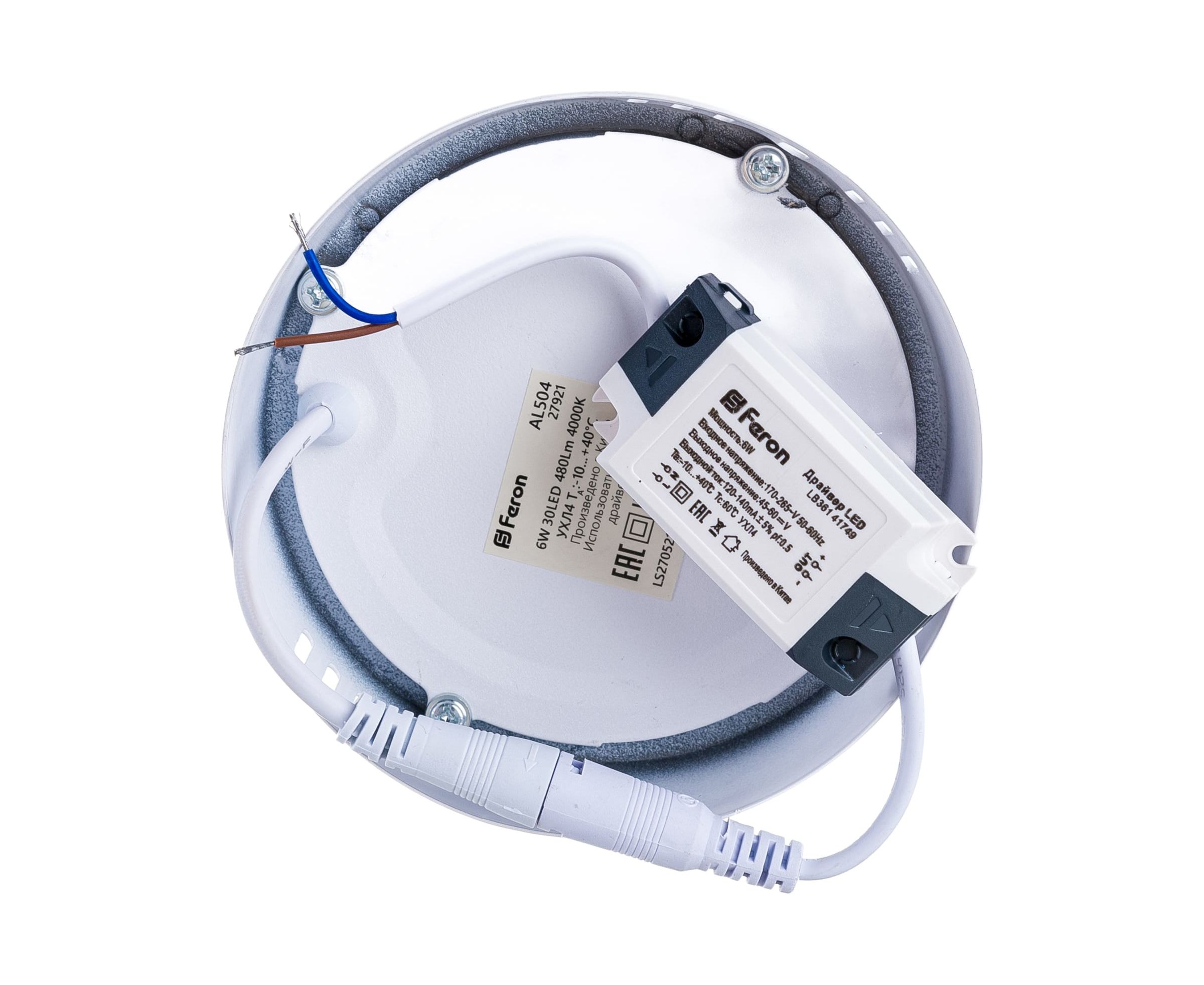 Накладной светильник FERON со светодиодами 6W, 480Lm, белый 4000К, AL504 27921