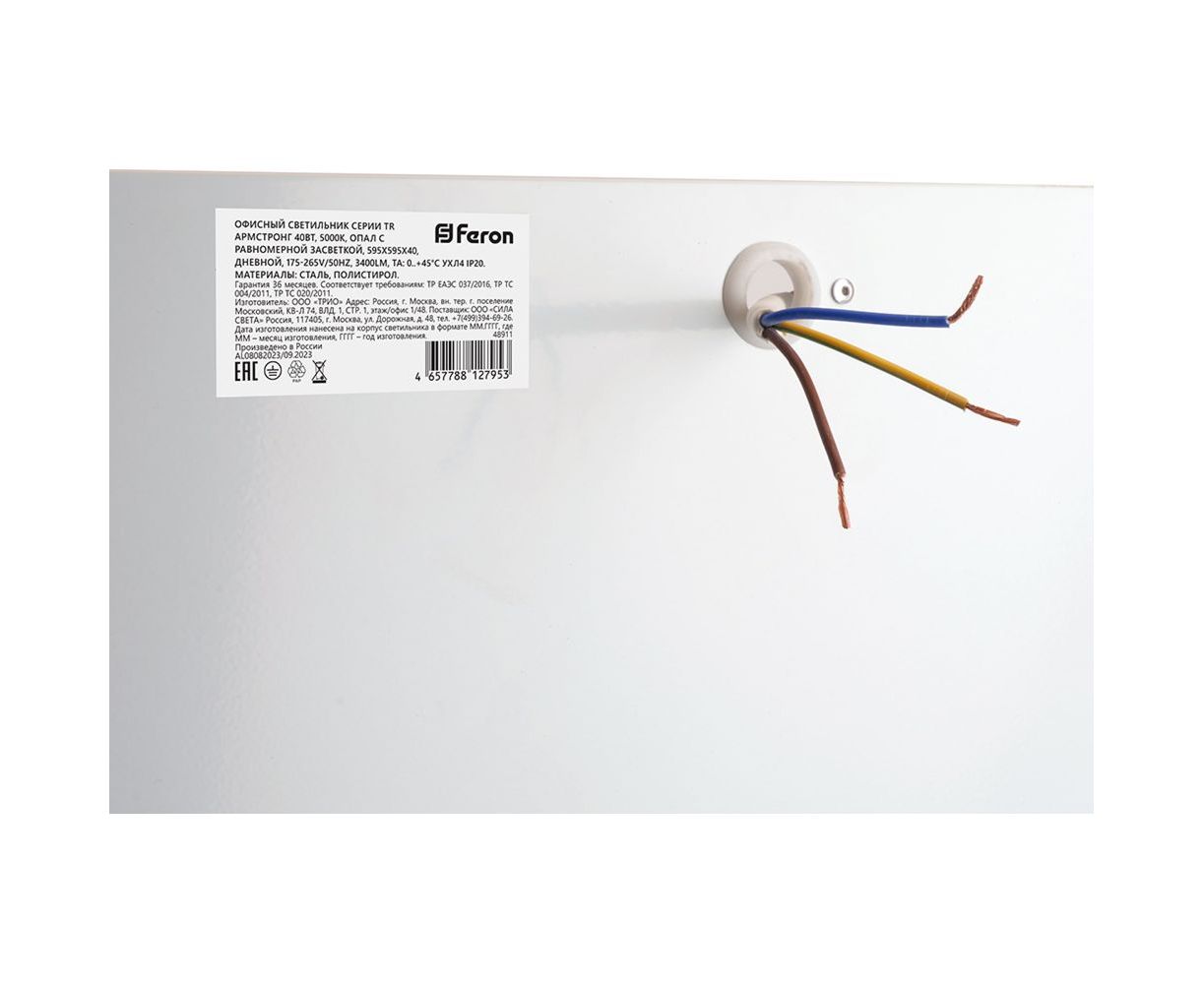 Офисный светильник FERON серии TR Армстронг 40Вт, 5000К, опал с равномерной засветкой 48911