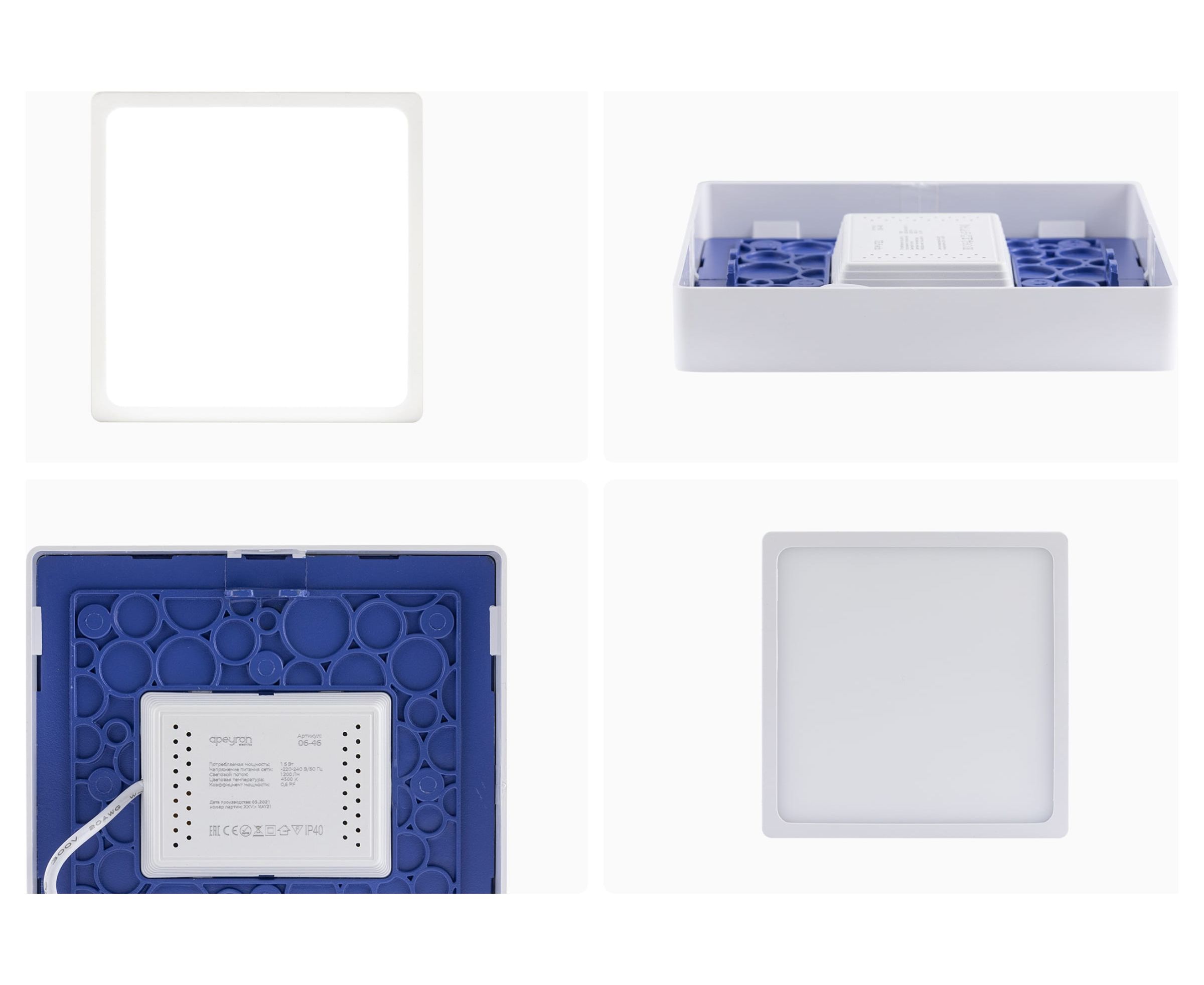 Светодиодная панель Apeyron накладная квадратная 220В, 15Вт, алюминиевый корпус, изолированный драйвер ДН 06-46